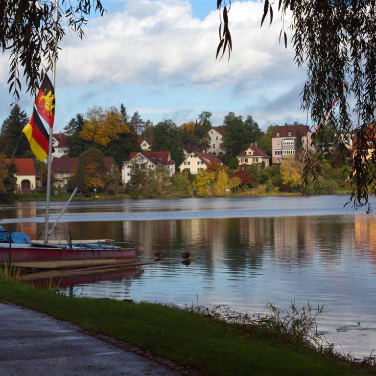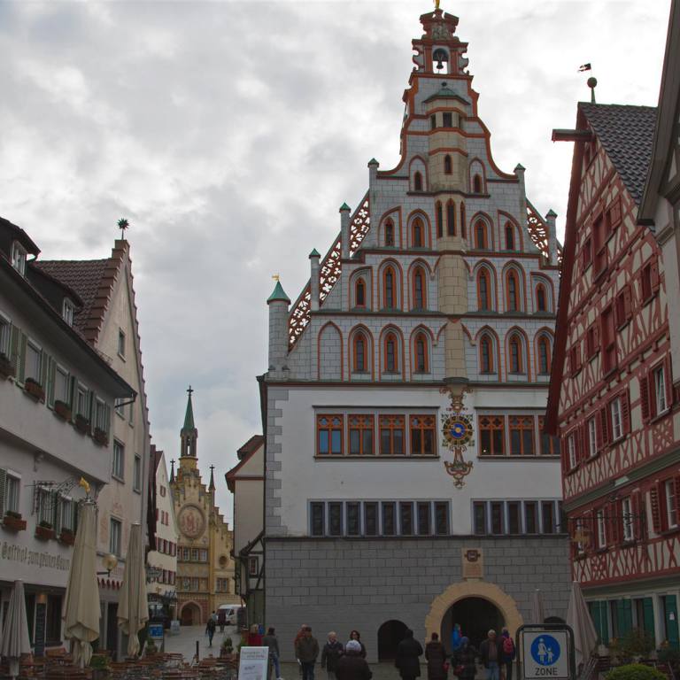 Vom Wohnmobilplatz aus bietet sich ein Spaziergang der Donau entlang an. Etwas ausserhalb der Stadt gelangt man auf das Gelände der Landesgartenschau 2013. Leider ist die Ausstellung bereits geschlossen. Sie dauerte nur bis in den September. Nun ist es bereits erste Hälfte Oktober. Die noch vorhandenen Gärten zeugen von der Vielfallt an Pflanzen und Gestaltungen entlang der Donau. Eine Hängebrücke am Ende der Ausstellung führte uns auf die andere Seite wieder zurück zu unserer Wohnung. Die Einkehr am Abend im Restaurant Traube in der Altstadt war dann noch das Pünktchen auf dem i. Gut genährt ging es zum Schlafen. Nach dem Frühstück, das Wetter lies nun zu wünschen übrig, machten wir noch einen kurzen Shoppingspaziergang in der Altstadt. Unser heutiges Ziel war aber Bad Waldsee und das Hymer Museum. Nach einer kurzen Fahrt fuhren wir zuerst direkt zum Wohnmobilstellplatz an der Therme. Dieser war gut besucht. Zu Fuss erreichten wir nach rund 20 Min. die Altstadt. Bad Waldsee liegt in Oberschwaben nördlich des Altdorfer Waldes auf 584 bis 754 m ü. NN. Die Altstadt erstreckt sich auf einer Landenge zwischen zwei Seen, dem Stadtsee , der von dem aus Richtung Süden kommenden Urbach gespeist wird, und dem etwas kleineren Schlosssee (Westen), in den der vom Stadtsee kommende Pfaffenbach mündet und der durch die nach Westen fließende Steinach entwässert. Beim nordwestlichen Stadtteil Michelwinnaden entspringt einer der beiden Quellbäche des Donau-Zuflusses Riss. Die Altstadt besitzt viele schöne schmucke Häuser.