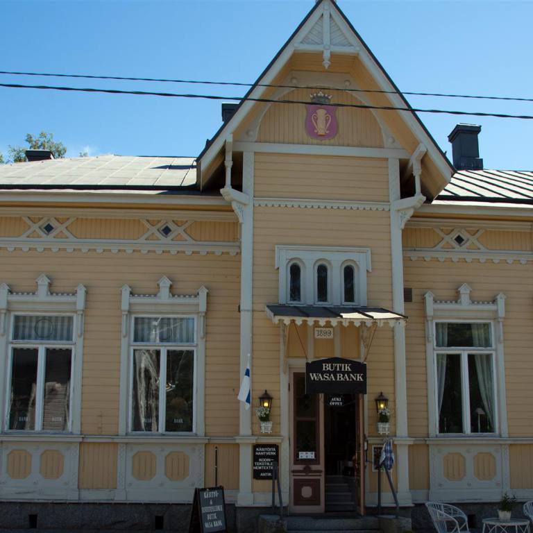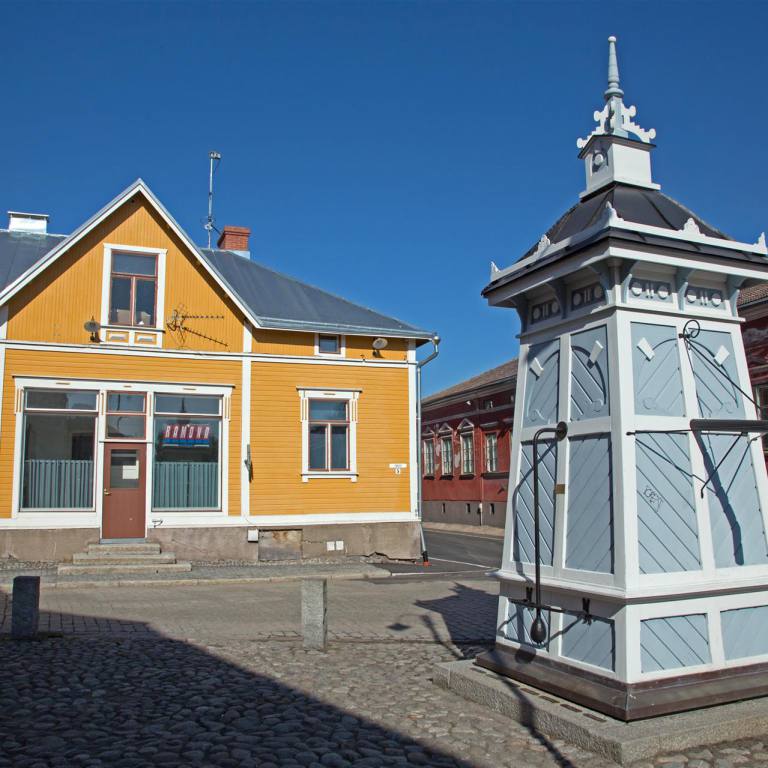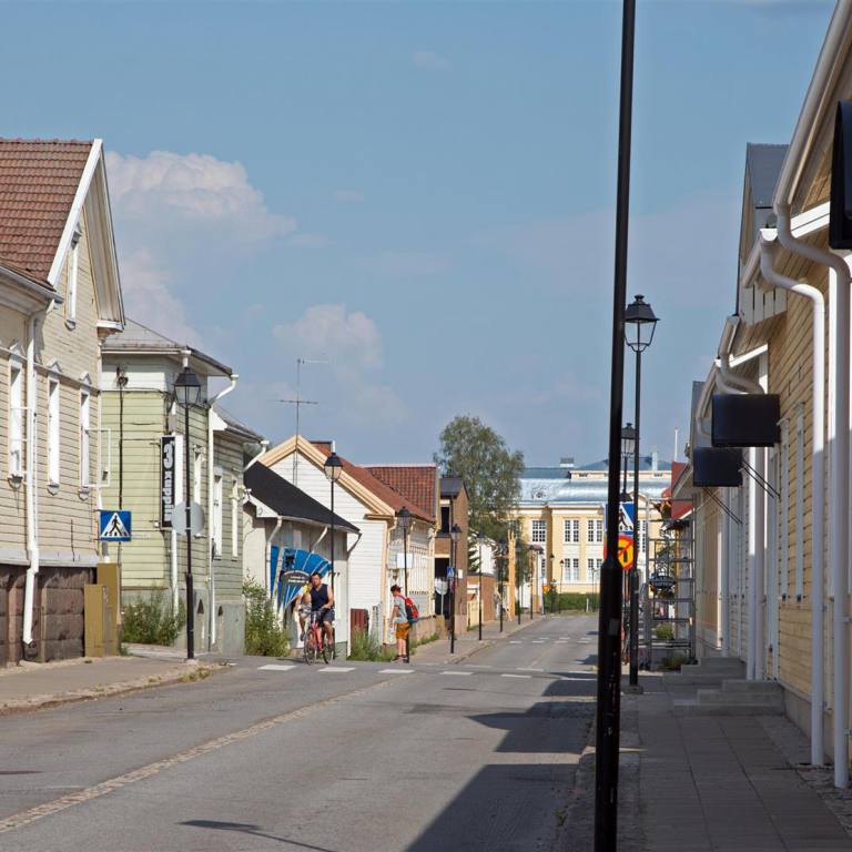 Bei herrlichem Sommerwetter genossen wir das Frühstück in Vaasa. Nachdem ich meine Berichte bearbeitet und hochgeladen hatte, entschlossen wir Kaskinen zu besuchen. Der Weg Richtung Süden war weiter geprägt durch riesige Kornfelder unterbrochen von einigen kleinen Gruppen von Bäumen. Wir fuhren auf der E08 rund 70 km. Bereits bei der Einfahrt ins Dorf sahen wir, dass es sich lohnte den Ort zu besuchen. Wir parkten auf einem riesigen leeren Parkplatz direkt am Meer. Eine Turi Info war direkt nebenan. So besorgten wir uns Material über das Städtchen. Es wurde 1649 von Per Brahe gegründet. Sie lag an einer günstigen Handelsstelle am Bottnischen Meerbusen. Die Innenstadt ist ein malerisches Milieu aus Holzhäusern des 18. Und 19. Jahrhunderts. Wenn man nach dem Plan, den wir vom Info bekommen haben durch das Städtchen läuft hat man das Gefühl, dass die Bewohner sich gegeneinander Anspornen ihre Häuser zu pflegen. Bei den Innenhöfen und Gärten ist einer schöner als der andere.