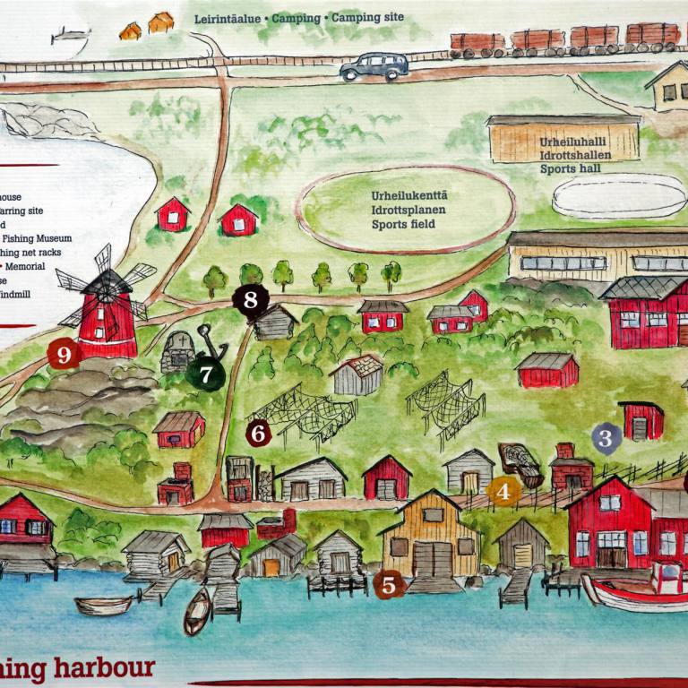 Da es gerade Mittagzeit war sind wir in ein schönes blau gestrichenes Restaurant gegangen. Dabei haben wir den früheren Olympiasieger in der Staffel und Bronze Medaillengewinner im 15 km Langlauf von Innsbruck im Langlauf Arte Koivisto kennengelernt. Er hat das Restaurant vor Jahren gekauft, als er mehrmals von Kokkola, wo er wohnte, nach Kaskinen musste weil ein Schmid ihn etwas machen sollte, aber nie fertig wurde. Da hat er gesehen dass alles zum Kauf ausgeschrieben war. Er hat es übernommen und nun einen schönen Betrieb aufgebaut mit Restaurant, Hotel, Räucherei und Savusauna. (Rauchsauna). Wir haben gut Fisch gegessen und uns anschliessend noch am Meer in einer Schaukel an der Sonne ausgeruht. Unser Spaziergang ging nachher weiter bis ans Ende der Insel, wo noch ein alter Stadtteil direkt am Meer ist mit Fischerhütten und Fischräuchereien. Am Schluss haben wir am Gasthafen an einem kleinen Restaurant noch den „Zvieri“ genommen. Richtig geraten , Kaffee und Kuchen. Ich genoss anstelle des üblichen Nachmittagsprozedere ein Finnisches Eis !! Herrlich bei den Temperaturen. Nach rund fünf Stunden Aufenthalt machten wir uns wieder auf den Weg für die letzten Kilometer zu unserem Tagesziel in Kristiinankaupunki.