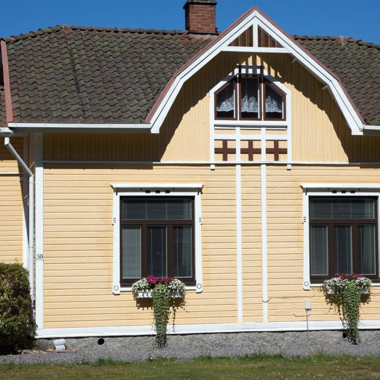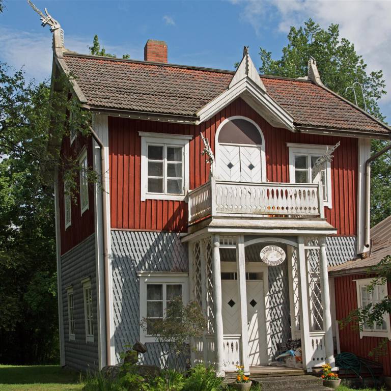 Nach den heftigen Gewittern am Abend ist es heute Morgen stark bewölkt aber schon 17 °C. Wir fuhren weiter, wenige Kilometer, nach Pietarsaari zum Svedenhaus. Das Haus auf dem Bild liegt in einem Park vor der Stadt. Es wird von einem Künstlerehepaar bewohnt. Gebaut wurde es von Viktor Schaumanin als Sommerhaus 1853. Das Künstlerehepaar bewirtschaftet das Haus nun und führt ein kleines Kaffee. In der Zwischenzeit mahlt er Bilder und seine Frau widmet sich der Muse. Sie leben sehr einfach. Es war interessant die Einrichtung und das Haus zu besichtigen