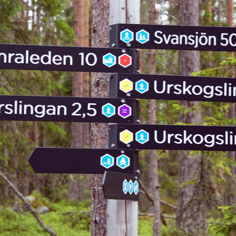 Am Morgen als wir auf dem schön gelegenen Campingplatz aufstanden war es wolkenlos. Nach dem Frühstück wollten wir weiter Richtung Mora. Auf der Infotafel vor dem Campingplatz sahen wir in der Nähe ein Kulturreservat. Da es wenige Kilometer vom Platz weg war beschlossen wir einen kurzen Halt einzulegen. Diese Sehenswürdigkeit erwies sich aber als Kriegsdenkmal. Wir drehten ab und merkten da dass wir den Schlüssel von den Sanitärgebäuden noch im Wohnmobil hatten. Also nochmals 10 km zurück und pflichtbewusst abliefern. Jetzt konnten wir endgültig starten. Wir kamen zügig voran, da es kaum Verkehr hatte und die Strassen gut waren. Es geht immer aufwärts, dann wieder abwärts. Unterwegs fanden wir dann doch noch eine Tafel mit einem echten Naturreservat. Wir bogen ab und nach 3 km kam im Wald eine Infotafel wo auch bereits schon ein Deutsches Wohnmobil stand. Wir spazierten etwa einen Stunde in schönster Natur.