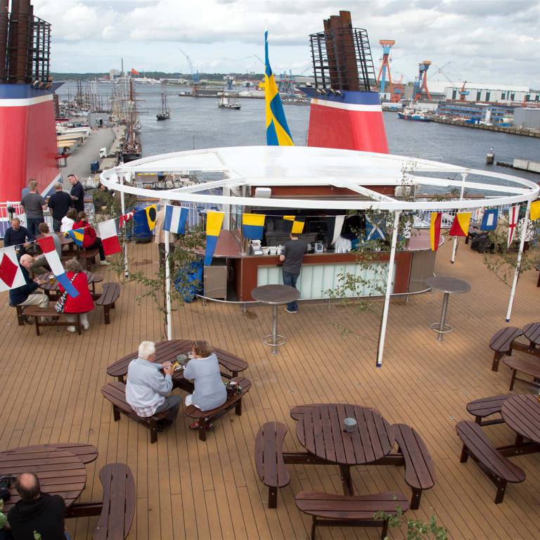 Es war früh Tagwache. Bereits um 08.00 Uhr wurde nochmals kurz getankt und anschliessend machten wir uns auf den Weg nach Kiel. Wir haben nämlich beschlossen die Rosenausstellung in Folge Zeitmangel zu streichen. Wir wollten nicht die ganze Strecke auf der Autobahn fahren. Desshalb nahmen wir den Weg um den Harz nach Helmstedt unter die Räder. Wir bewegten uns in der alten DDR. Die Felder waren ziemlich Monokultur, da es entweder Riesenfelder Kartoffeln oder dann ebenso in den gleichen ausmassen Kornfelder gab. Landschaftlich aber wunderschön, viel Natur. Um 11.00 Uhr waren wir in der ehemaligen Grenzstadt Helmstedt. Wir gingen zu Fuss zum kleinen Markt und kauften Früchte und Gemüse ein. Es folgte ein Besuch eines kleinen ursprünglichen Kaffees. Nach dem Verzehr eines hervorragenden selbstgemachten Kuchen und einer Tasse Kaffee mussten wir weiter ziehen. Ich entschied nun Richtung Wolfsburg und dann auf die Autobahn Richtung Hamburg zu fahren. Eine schlechte Entscheidung wie sich herausstellte. Schon vor Hamburg standen wir in einem kompakten Dreispurigen Stau. Es wollte und wollte nicht weiter gehen. Tuulia sah das Schiff ohne uns davon schwimmen. Nach rund einer Stunde löste sich der Stau nach dem Elbtunnel au. Grund waren die Bauarbeiten vor dem Tunnel, wo die drei Spuren in zwei übergingen. Nachher konnten wir den Rest der Strecke nach Kiel problemlos bewältigen. Wir hatten am Ende noch eine gute Stunde Reserve für das letzte Einschiffen. Als wir zum Quai kamen konnten wir nachdem wir den Zimmerschlüssel bekommen hatten sofort auf das Schiff auffahren. Nach kurzem Suchen faden wir unser Zimmer und richteten uns ein. Wir hatten noch genügend Zeit das Schiff zu erkunden und ich setzte mich an den PC um den ersten Bericht zu erfassen. Leider war das WLAN so Grottenschlecht, dass ich ausser einem Absturz keinen Bericht aufs Netz brachte. Der Ärger war umso grösser, als Stena Line speziell das WLAN rühmte das sie anboten. Um 20.30 Uhr hatten wir einen Tisch reserviert für das grosse Skandinavische Büffet. Eine Augenweide und wir hatten viel Zeit zur Verfügung. Also los Vorspeise mit Lachs, diversen Fischen, Krebsen und Shrimps. Anschliessend konnte man verschiedene warme Speisen mit Beilagen wählen. Das Dessertbuffet hatte es auch in sich. Es stand gar eine Softeis Maschine bereit wo man sich selbst bedienen konnte wie man wollte. Die Getränke Wein, Bier und Softgetränke konnte man direkt ab Zapfhahn selbst einschenken. Gut genährt ging ich dann das Fussballspiel Deutschland gegen Gana schauen. In der zweiten Halbzeit dann plötzlich Stromausfall und absolute Ruhe auf dem Schiff. Kurz darnach unerträgliches Gehupe in verschiedenen Tönen. Was war dann das ??? Langsam begriff ich, dass das Zeichen Feueralarm bedeutete. Ich ging zum Sammelpunkt wo die Rettungsboote sich befinden. Es waren schon verschiedene Passagiere dort, die meisten mit einem Hund an der Leine oder auf den Armen. Tuulia war schon vor mir dort. Inzwischen huschten Feuerwehrleute umher. Etwas gespenstisch die ganze Stimmung. Langsam sickerte durch, dass das Problem sich im Maschinenraum abspielte. Wir warteten, bis Entwarnung kam. Als wir bereits im Zimmer waren meldete sich der Kapitän und gab endgültig Entwarnung. Er sagte, dass in ca. einer halben Stunde die Motoren wieder gestartet werden aber nur Zwei von Drei. Die Ankunft in Kiel würde entsprechend etwa eine Stunde später sein. Jedenfalls schliefen wir nach kurzer Zeit ein waren am Morgen zwar etwas gerädert aber wir lebten immer noch.