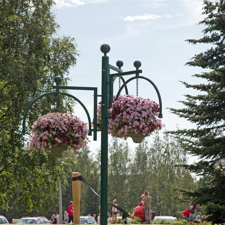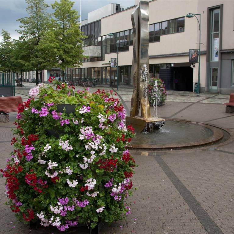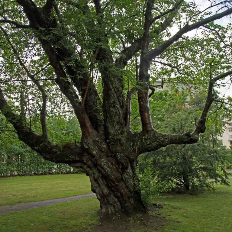 Anschliessend fuhren wir in die Stadt. Pietarsaari ist eine reizende Stadt mit besonderem Flair. Im Zentrum beeindruckt der markante Bau von Strengbergs Tabakfabrik. Die Spitze hat eine eigenwillige globusrunde Turmuhr. Die älteste Tabakfabrik Europas beherbergt das Tabakmuseum. Wenn man durch den Torbogen geht kommt man direkt ins Holzbauviertel Skata. In diesem Viertel wurde der Schriftsteller und Nationaldichter Runneberg geboren. Wir spazierten zum alten Hafen. Es hat einen schönen Park, den wir umrundeten und uns auf den Rückweg machten, denn es wurde wieder bedrohlich schwarz und man hörte Donnern von weitem. Wir waren im Wohmobil eingestiegen und schon ging es los mit Wasser Kübelweise. 10 Minuten später war der Spuck vorbei. Das hatten wir heute bereits schon mal beim Fahren erlebt. Wir hatten Zeit um Mittag zu Essen. Tuulia kochte aus dem Tiefkühler Essen was sie zu Hause vorbereitet hatte. Anschliessend machten wir noch einen Rundgang im Zentrumsnahen Park wo es viele verschiedene Bäume und Blumen hat.