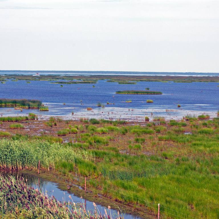 Beim Aufstehen erwartet uns wieder ein wunderschöner Tag. Nach dem Frühstück genossen wir die Meersicht mit den riesigen Dünen. Wir machten einen Spaziergang der Küste entlang. Die Füsse im seichten Wasser liefen wir rund 2 km dem Strand entlang. Es gab eine Sanddüne quer im Meer, wo man rund 500 m rauslaufen konnte. Sie war nur wenige Meter breit. An der Spitze wenige Zentimeter. Nach runde 2 ½ Stunden entdeckten wir ein Strandrestaurant oberhalb der Dünen. Da kann man sicher gut Kaffee und Kuchen geniessen. Wir trafen aber ein bestens sortiertes Lunchbuffet an was uns von den ungesunden Süssigkeiten abhielt. Der Ausblick beim Essen war traumhaft. Nach der Rückkehr zum Wohnmobil leerte ich noch alle Tanks und füllte den Frischwassertank.