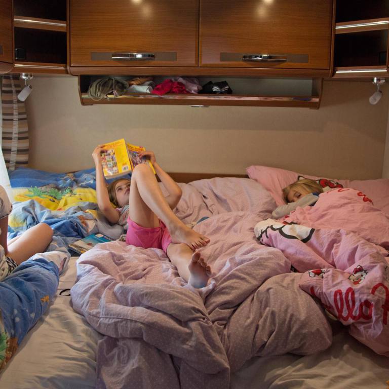 Finja ist mit Tuulia zusammen am Stricken eines Bodenteppichs für das Wohnmobil. Sie sind schon ziemlich weit gekommen. Beim zweiten Versuch eine Stunde später fanden wir beim Surfzenter ein Platz zum Schwimmen. Es war aber nicht wirklich wärmer. Trotzdem Joana war mit einem Sprung im Wasser und tauchte. Immer wieder verliessen sie das Wasser und mummten sich in die Tücher ein. Elina tat das gleiche und schwamm rasch ein paar Züge. Nach kurzer Zeit gingen wir zurück zum Wohnmobil. Gegen 11.00 Uhr kam Elfride zu uns. Sie ist die Gotte von Markus. Den ganzen Nachmittag gab es viel Gesprächsstoff. Die Kinder waren nicht unbedingt glücklich, beschäftigten sich aber mit den Nachbarkindern. Als Belohnung gingen wir dann ins Surfcentrum wo ein Restaurant zu Pizza einlud. Neben dem Restaurant ist ein schöner Spielplatz mit Seilen und Rutschen. Tuulia standen die Nackenhaare als sie zusehen musste wie Joana auf den Fussspitzen balancierte, weil das Seil für se zu hoch war. Jona meinte geht doch ? Nach etwas mehr als einer Stunde liefen wir zurück. Es dauerte aber noch bis 22.30 Uhr bis Bettruhe war.