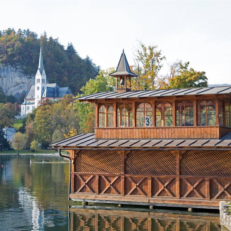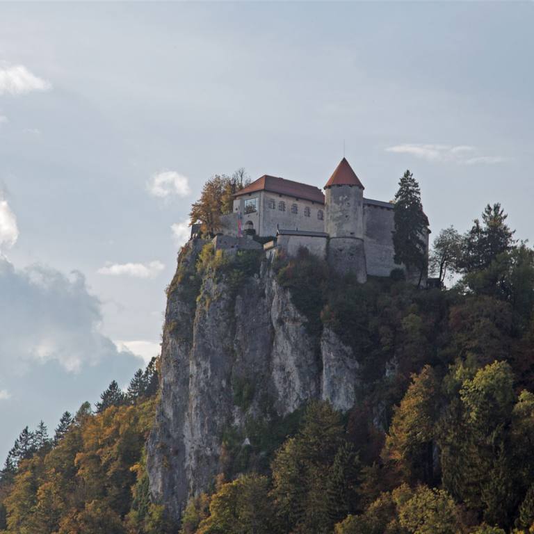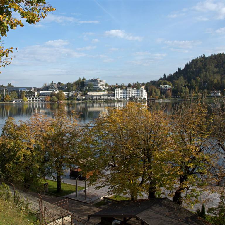 Es gibt nun zwei Möglichkeiten zum Parkplatz zurück zu gehen. Den gleichen Weg zurück oder dann heisst es immer bergauf bis zur Kirche Santa Katharina. Von oben hat man einen wunderbaren Überblick über das weite Land. Ein schmaler Weg führt dann über Wiesen wo Kühe und Schafe grasen wieder zurück zum Parkplatz. Der Weg ist ungefähr 6 km lang und am Anfang relativ steil. Wir hatten Zeit und so wurden knappe drei Stunden für die ganze Strecke. Im angrenzenden Restaurant genossen wir noch frische Fische zum Mittagessen. Diese sollen angeblich aus dem Fluss kommen. Unser Weg führte uns anschliessend nach Bled was nur 4 km Fahrt bedeutete. Bei der Wegfahrt kam uns noch zwei Cars in die Quere. Die Strasse ist sehr eng und erforderte kleine Fahrkünste. Da wir keinen Parkplatz fanden in Bled gingen wir direkt zum Campingplatz. Zu Fuss rund dreiviertel Stunden Fussmarsch kamen wir dann trotzdem noch in das kleine Städtchen.