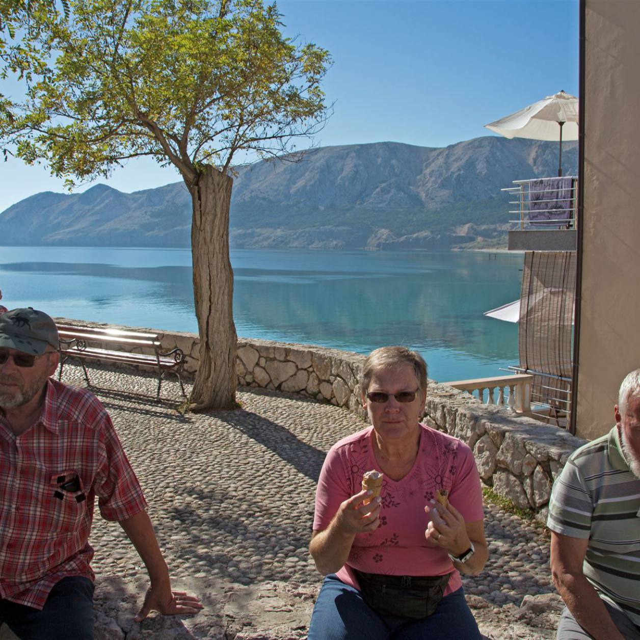 Heute hiess es Abschied nehmen von der schönen Insel Krk. Zuvor fuhren aber noch an die südöstliche Seite der Insel zur wunderschönen Hafenstadt Baska. Sie liegt in einem sanften Tal in einer Bucht umgeben von Weingärten, Olivengärten und Ginster, dessen bildhafter Hintergrund das steinige Gebirge von Velebit und die Insel Prvic sind. Der 1800 m lange Sandstrand lud zum Baden ein. Das angenehme Klima mit über 2500 Sonnenstunden pro Jahr und die üppige Vegetation mit vielen Unterhaltungs- und Sportereignissen machen Baska auf der Insel Krk zu einem der schönsten Strände der Adria.