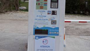 Die Einfahrt war mit einer Barriere gesichert. Daneben stand ein Automat. Automat und Frankreich sind nicht meine Vorliebe. Bereits bei der Heimfahrt von Marokko 2015 hatte ich mit den Autobahn Zahlstellen meine Mühe und Not. Und so kämpfte ich wieder mit der Tücke des Objektes. Erschwerend kam dazu, dass der Teil des Display dreiviertel nicht lesbar war. So blieb nur zu erahnen was eventuell gefragt ist. Zuerst musste man bezahlen, dann kam eine Plastikkarte heraus, mit der man eigentlich die Barriere hätte öffnen können. Aber nichts geschah. Ein Sankt Galler Ehepaar versuchte es ebenfalls und wurde auch nicht belohnt mit der Einfahrt. Ein Telefonat an die Verwaltung brachte dann die Barriere dazu sofort den Einlass frei zu geben. Geschafft nach rund 20 Minuten. Wir haben dafür aber einen schönen Platz gefunden. Um die Füsse zu vertreten spazierten wir noch dem See entlang und genossen ein Eis und eine Crepes (Tuulia). Wir kehrten zum Wohnmobil zurück und genossen den Abend,