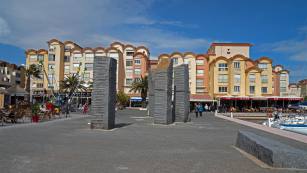 Wir stehen auf einem riesigen Stellplatz für mehr als 100 Wohnmobile. Es ist ein grosser Platz direkt am Meer. Dadurch haben wir schöne Aussicht. Der Platz hat alle Annehmlichkeiten die ein Wohnmobilist braucht. Der Platz heisst: Aire des 4 Vents, Port Sud. Quai de la Tramontane. Wir sind gegen neun Uhr am Abend nochmals auf einen kurzen Spaziergang in die Stadt gegangen. Es war nichts mehr los. Beinahe alle Lokale waren geschlossen. Einzig die Palmenallee wurde in wechselnden Farben angestrahlt, was ein schönes Bild ergab.
