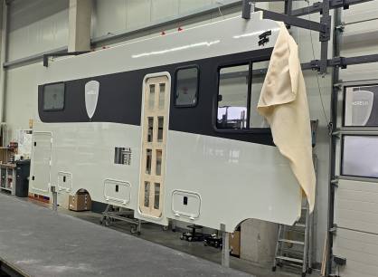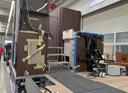 Gespannt wartete ich darauf durch die Türe der heiligen Hallen schreiten zu können. Ich habe bei meinem letzten Besuch 2015 in den letzten Takten mein Wohnmobil gesehen, das in der Fertigstellung war. Gespannt war ich was alles geändert hat seit meinem letzten Besuch. Am Montag werden drei neue Takte eingeführt. Es stand alles bereit. Im gesamten durchlaufen die Chassis 20 Takte. Nachfolgend in einigen Bildern der Ablauf: