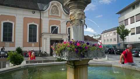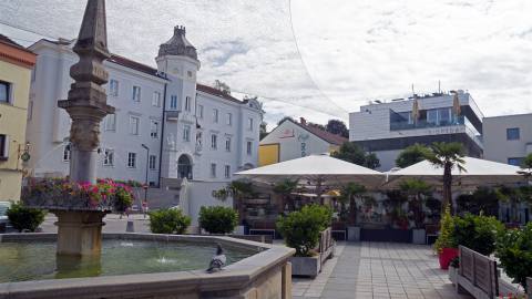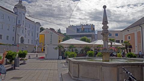 Nach einer ruhigen Nacht ohne Regen erwachte ich um 08.00 Uhr bei herrlichem Sonnenschein. Wir sattelten die Räder und fuhren rund 6 km nach Grieskirchen runter. Zuerst besuchten wir das Städtchen. Im Zentrum hat es einen schönen Platz mit einem grossen Freiluft Restaurant.