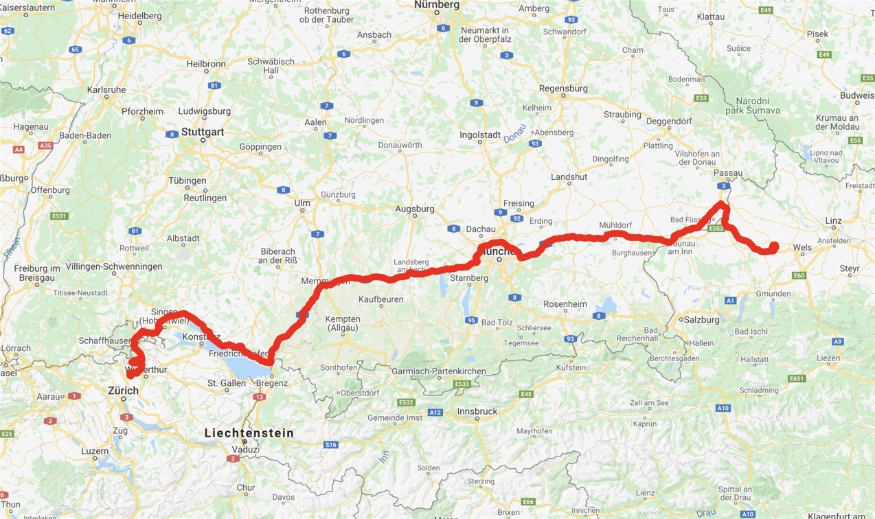 Da wir unsere Reise nach Skandinavien um einen Monat verschoben haben, war ein Besuch der Faustball Veranstaltung in Grieskirchen möglich. So entschloss ich mich kurzfristig hinzu fahren. Am Dienstagmorgen starteten wir in Embrach. Ich habe Tuulia mitgenommen und unterwegs in Singen abgeladen. Sie kommt was zu erwarten war nicht mit. So fuhr ich alleine weiter und wählte den Weg dem Bodensee entlang. Es war keine gute Idee. Auf den engen Strassen war viel los, vor allem Lastwagen versperrten den Weg oder behinderten die Fahrt. Oberhalb von Lindau kam ich dann endlich wieder auf die Autobahn. Von nun an ging es flott Richtung München. Kurz vor München machte ich bei einer Raststätte Halt. Kurze Pause mit Essen und einem Eis. Ohne Unterbruch erreichte ich kurz nach 17.00 Uhr meinen Schlafort. Es waren bereits zwei Wohnmobile vor Ort. Man kennt sich ja, so ein freundliches Hallo an die beiden Rheintaler (Eltern von Tanja und Kollegen von Ihnen.
