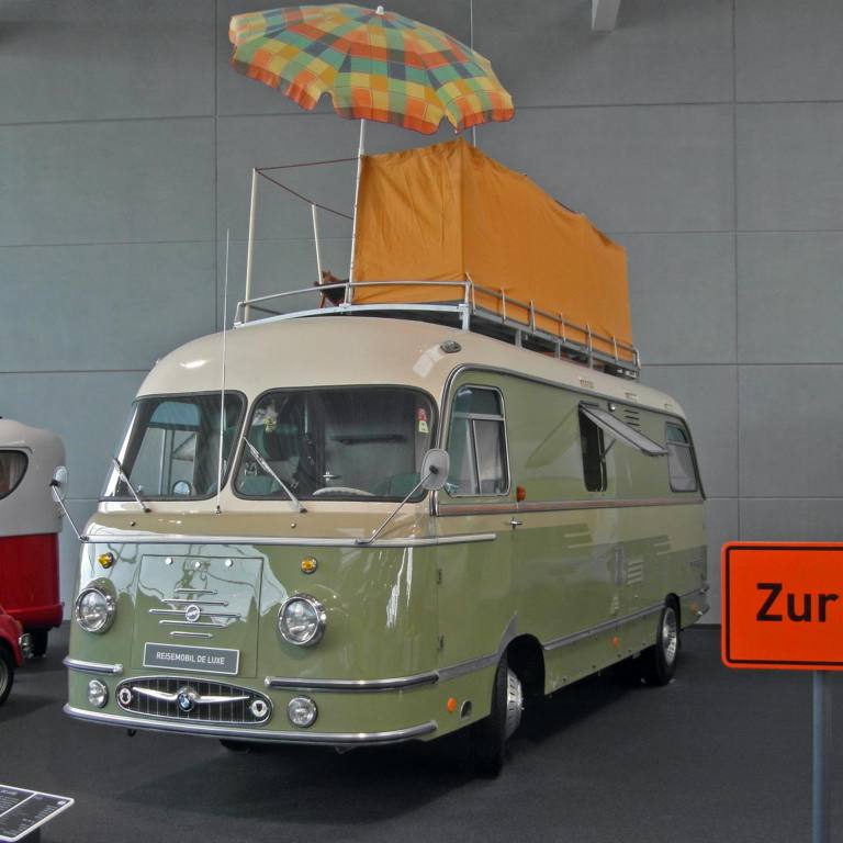 Nach einem Mittagessen in der Stadt fuhren wir dann die 5 km zum Werksgelände der Hymer AG. Das Museum wurde letztes Jahr geöffnet. In der Welt unterwegs. Das Hymer Museum in Bad Waldsee lädt zur einzigartigen Entdeckungstour durch Geschichte, Gegenwart und Zukunft des mobilen Reisens ein. In der über 6.000 Quadratmeter großen Dauerausstellung werden mehr als 80 historische Wohnwagen und Reisemobile präsentiert. Träger des Erwin Hymer Museums ist die Erwin Hymer Stiftung mit Sitz in Bad Waldsee. Die gemeinnützige Stiftung bürgerlichen Rechts wurde 2001 von Erwin Hymer mit dem Zweck der Förderung der Kunst und Kultur, insbesondere die Förderung von Kulturgütern im technischen Bereich, Errichtung und Unterhaltung eines Museums für Caravan- und Motorcaravan-Oldtimer, ins Leben gerufen. In unterhaltsamen Themen werden alte Wohnwagen mit den dazugehörigen Oldtimern präsentiert. Aber auch alte Wohnmobile werden präsentiert. In den diversen Ländern, die dargestellt werden kann man ein Foto machen, dass dann im Shop als Postkarte ausgedruckt wird, oder mit dem Code auf der Eintrittskarte im Internet heruntergeladen werden.