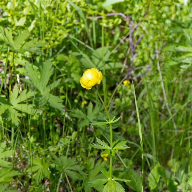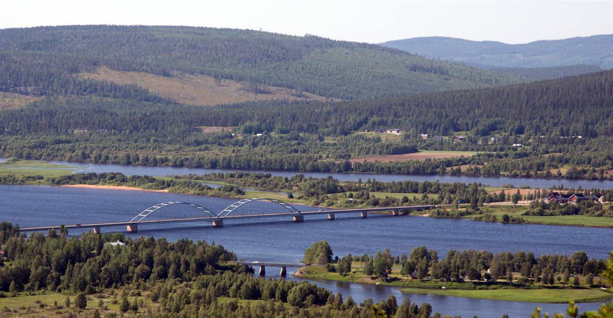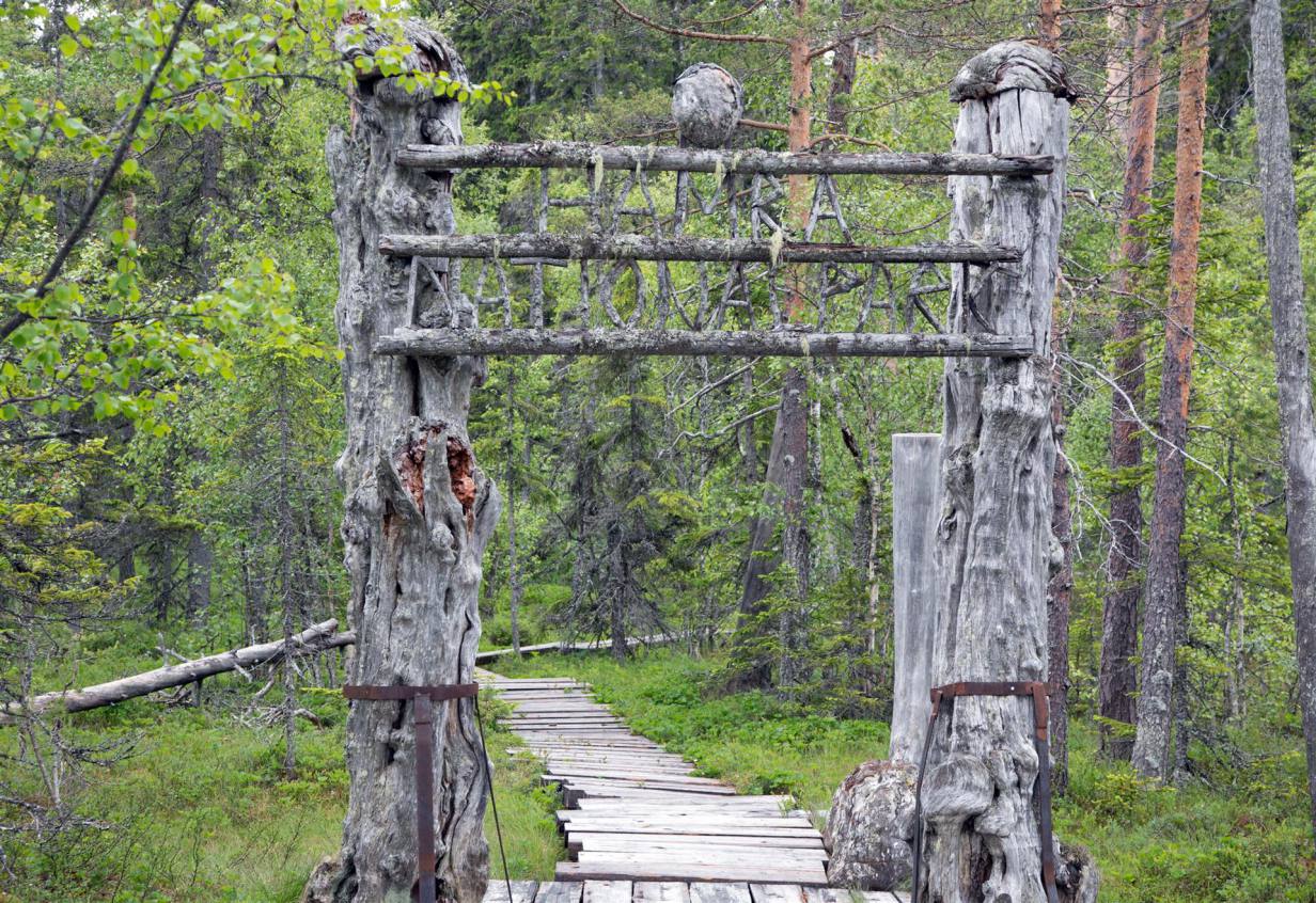 Der Campingplatz von Tärnaby war am Fluss gelegen und etwas ausserhalb der Stadt. Trotzt des Rauschens haben wir gut geschlafen. Nach dem Frühstück bei herrlichem Sonnenschein, gingen wir noch rund eineinhalb Stunden dem Fluss nach aufwärts spazieren. Der Weg war gesäumt von Blumen und verlief hauptsächlich im Wald. Es war erst Frühling in Lappland. Gegen Ende des Weges kam eine Hängebrücke über den Fluss