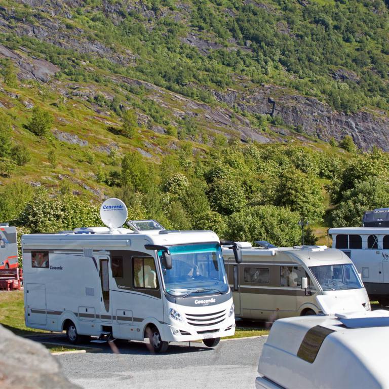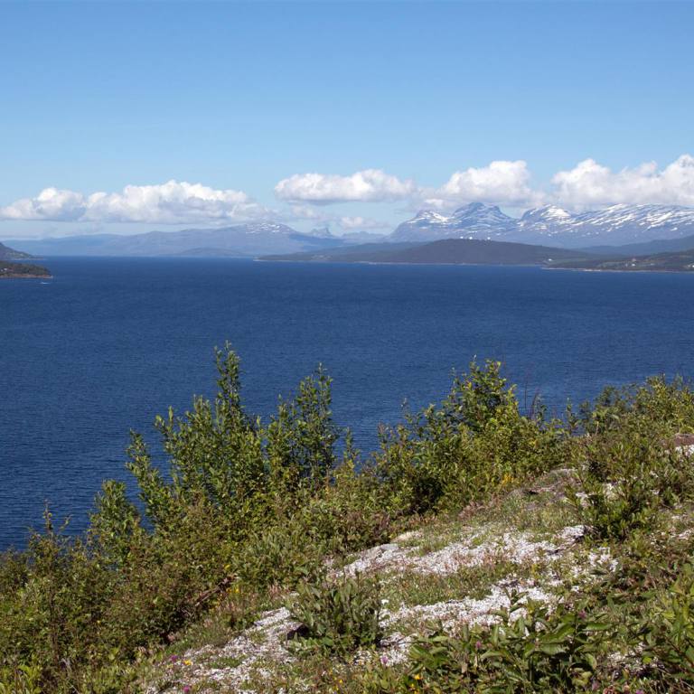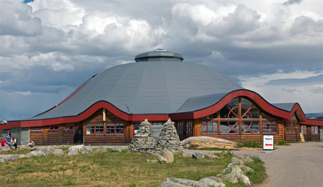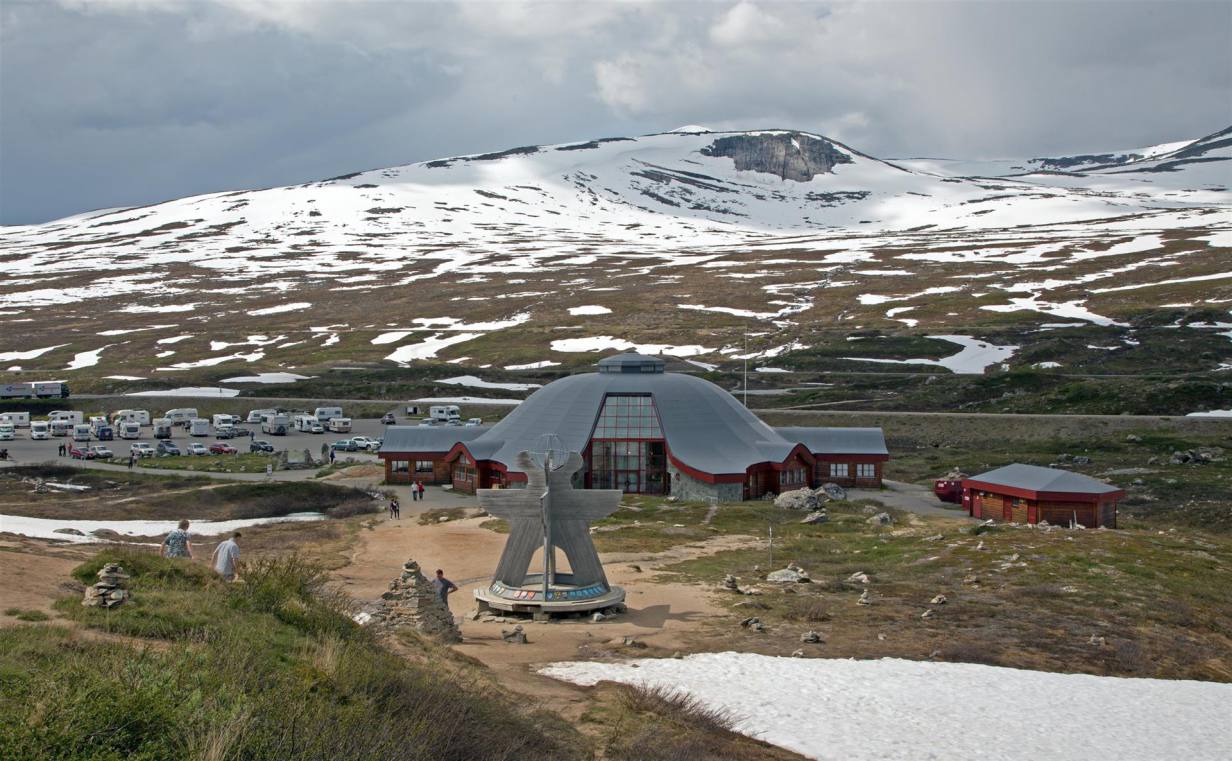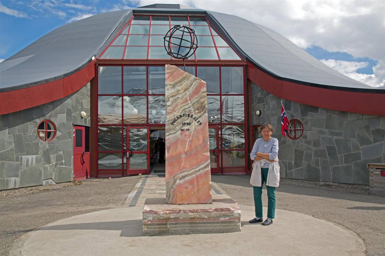 Das Polarkreiszentrum wurde am 13. Juli 1990 gleichzeitig mit der neuen Streckenführung der E 6 über das Saltfjell offiziell eröffnet. Hier befinden Sie sich ca. 680 Meter über dem Meer an der Grenze zum Saltfjellet-Svartisen Nationalpark. Das Saltfjell zeichnet sich durch eine artenreiche Pflanzen- und Tierwelt und zahlreiche Angelseen aus.Das Polarkreiszentrum liegt an der E 6 mitten auf dem Saltfjell im Bezirk Nordland und ist durch diese Lage an der Hauptverkehrsverbindung zwischen Nord und Süd ein natürlicher Halt. Es ist auch wegen seiner der Landschaft angepassten Architektur sehenswert. Im Gebäude und in der Umgebung ist der Polarkreis deutlich gekennzeichnet. Wir haben Postkarten geschrieben und sind noch rund eine Stunde in der Umgebung spaziert. Es ist landschaftlich ein breites Tal mit Schneebergen rund herum. Keine Bäume aber immer noch Schneeflecken. Im Wohnmobil haben wir dann Mittag gegessen und sind am späten Nachmittag langsam gegen Rognan weiter gefahren. Die E6 führt uns entlang des Saltasalva weiter hinab ins Saltdal. Die schneebedeckten Gipfel links über uns gehören noch immer zu 1800 Quadratkilometer grossen Nationalpark Saltfjell. Auch hier immer wieder schöne Blicke zum tossenden Fluss der über Terrassen ins Tal zieht. Wir nähern uns Rognan am Meer. Die letzten Kilometer sind flach nachdem es zügig von 700 m auf ging. Wir erreichten die Stadt wo wie einen schönen Platz mit direkter Sicht auf das Meer und die untergehende Sonne geniessen.