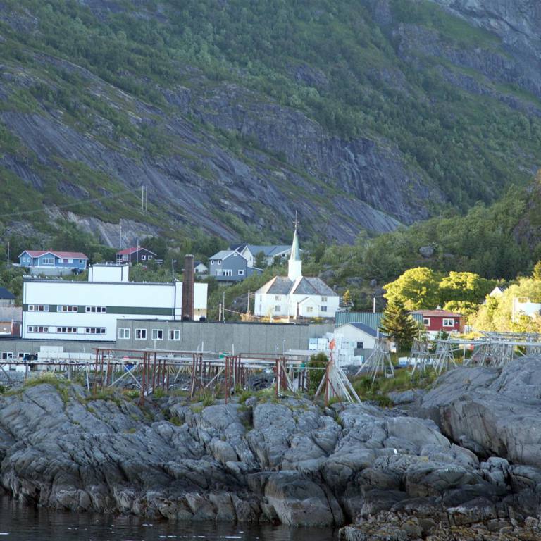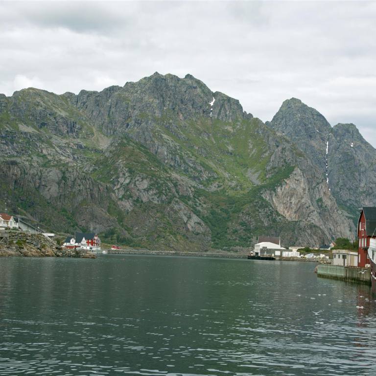 Der Weg zur Stadt, die auf einer Insel liegt führt über zwei grosse Spannbetonbrücken. Es sind eindrückliche Bauobjekte. Das Dorf ähnelt etwas Venedig. Die Häuser sind auf Holzpfählen ins Meer hinaus gebaut. Es gibt viele kleine Geschäfte und Fischbetriebe. Das gab mir das Zeichen in eine Fischbeiz zum Mittagessen zu gehen. Denn frischer bekommt man den Fisch kaum. Und er hielt auch was er versprach. Nach einem weiteren Bummel verliessen wir das Dorf und fuhren die 10 km wieder zurück bis wir die E10 erreichten. Wir wollten nun eigentlich einen gemütlichen Übernachtungsplatz suchen, fanden aber keinen. So fuhren wir um 21.50 Uhr noch mit der Fähre von Fiskebol nach Melbu. Die Fähre ist sehr kurz nur ca. 20 Minuten. Schon bei der Einfahrt sahen wir einige Wohnmobile auf der Molde stehen. Damit war unser Schlafplatz gesichert.