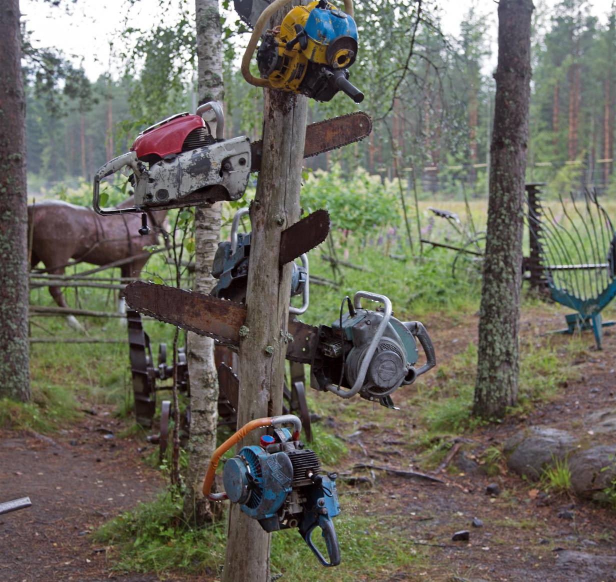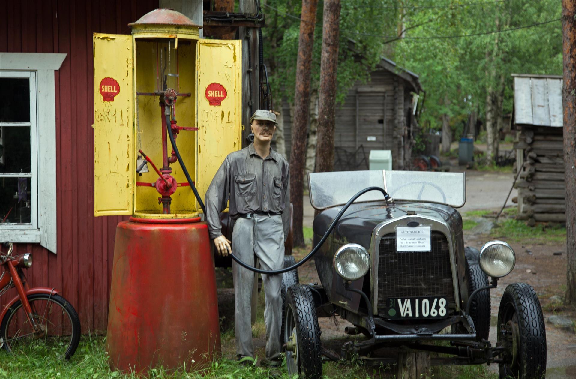 Gegen drei Uhr fuhren wir los Richtung Kokkola. Ich erwartete eigentlich eine langweilige Fahrt auf der E-8. Die Strasse verläuft immer geradeaus, keine Sicht auf das Meer. Aber was war das ? Links von mir rauschten eine ganze Serie alter Traktoren vorbei. Kurz zuvor habe ich eine Tafel von einem Museum gesehen. Blinker raus und mal nachschauen was da geboten wird. Die vielen Autos die da parkiert waren deuteten auf etwas Interessantes hin. Ein Gewitter war im Anzug, das wir bei einem Kaffee in einem alten Holzhaus zuerst einmal abwarten mussten. Nach runde einer halben Stunde gingen wir dann in das Freiluftmuseum. Was man da zu sehen bekam unglaublich. Es waren viele kleine alte Häuser mit verschiedenen Inhalten. Bäckerei, Schuhwerkstatt, Molkerei usw. In jeden Haus hatte es Gegenstände die bis gegen 100 Jahre alt waren. Das alles wurde vom Besitzer, mit dem wir noch sprechen konnten seit seinem zwanzigsten Altersjahr gesammelt. Es geht durch alle Gebrauchsgegenstände wie auf den Bildern ersichtlich sind. Motorsagen, Autos, Traktoren, Generatoren, Elektrische Anlagen, Werkzeuge aller Art. Das besondere daran, alle Gegenstände waren so wie er sie bekommen hat. Defekt und verdreckt oder verstaubt. So viele alte Sachen habe ich noch nie gesehen. In der Freiluftausstellung waren alte Autos, Traktoren Landmaschinen und vieles mehr zu sehen. Zu guter letzt hatte er noch einen Zoo mit vielen Haustieren für die Kinder. Die Sammlung die in den letzten 50 Jahren angelegt wurde ist einmalig. Erschlagen von so viel Eindrücken zogen wir weiter