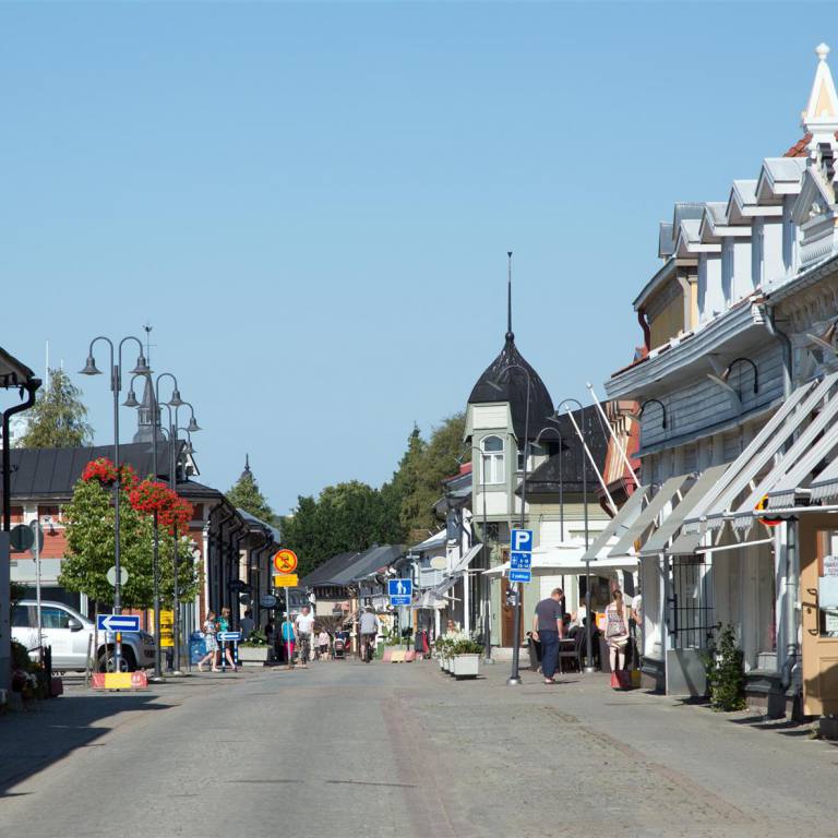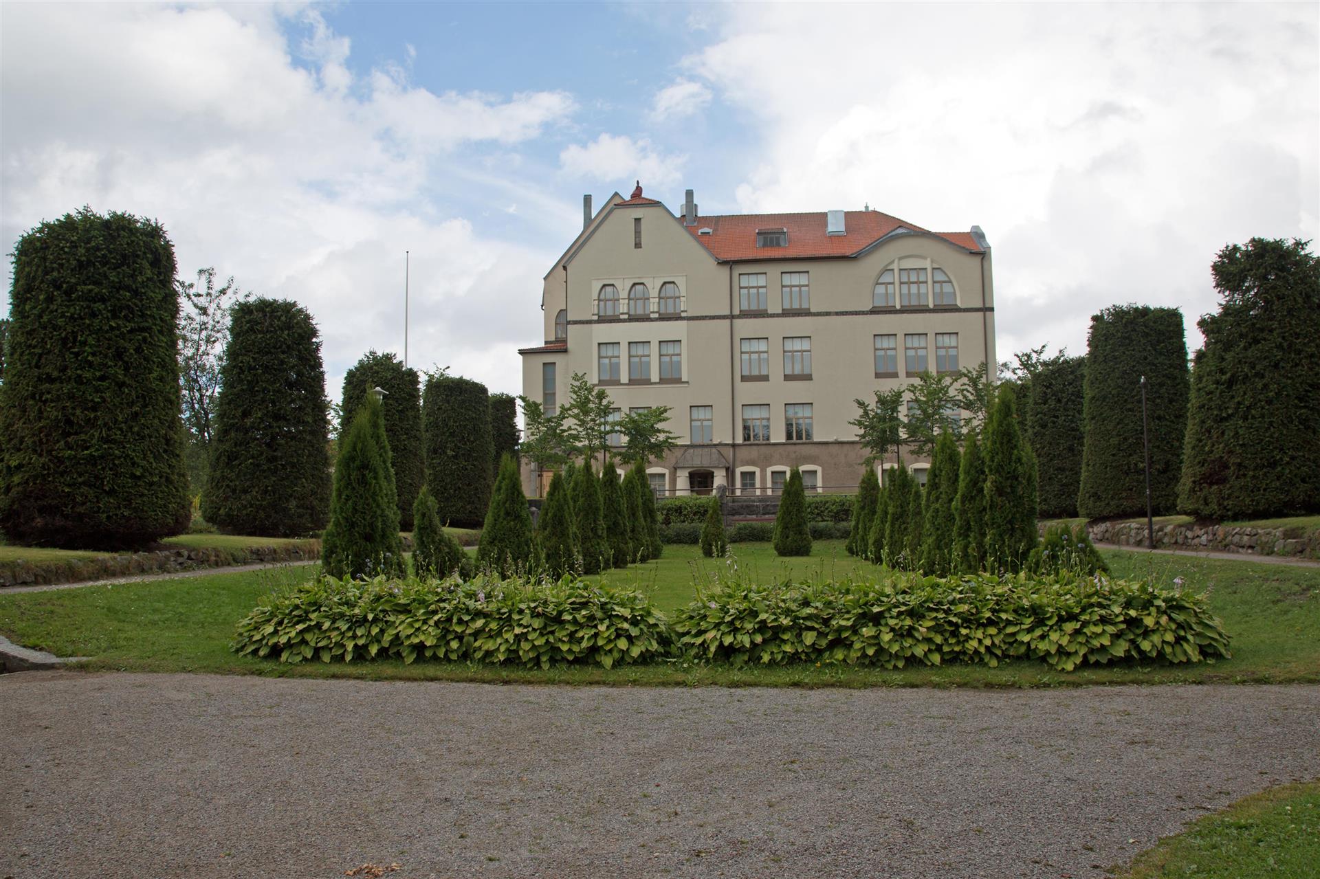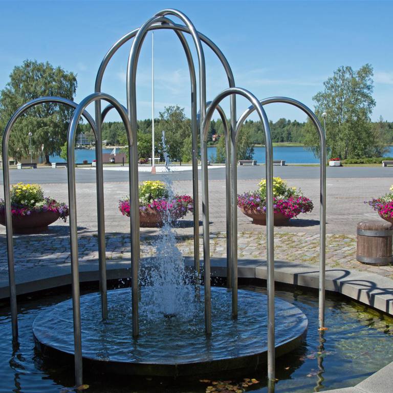 Anschliessend fuhren wir in die Stadt. Pietarsaari ist eine reizende Stadt mit besonderem Flair. Im Zentrum beeindruckt der markante Bau von Strengbergs Tabakfabrik. Die Spitze hat eine eigenwillige globusrunde Turmuhr. Die älteste Tabakfabrik Europas beherbergt das Tabakmuseum. Wenn man durch den Torbogen geht kommt man direkt ins Holzbauviertel Skata. In diesem Viertel wurde der Schriftsteller und Nationaldichter Runneberg geboren. Wir spazierten zum alten Hafen. Es hat einen schönen Park, den wir umrundeten und uns auf den Rückweg machten, denn es wurde wieder bedrohlich schwarz und man hörte Donnern von weitem. Wir waren im Wohmobil eingestiegen und schon ging es los mit Wasser Kübelweise. 10 Minuten später war der Spuck vorbei. Das hatten wir heute bereits schon mal beim Fahren erlebt. Wir hatten Zeit um Mittag zu Essen. Tuulia kochte aus dem Tiefkühler Essen was sie zu Hause vorbereitet hatte. Anschliessend machten wir noch einen Rundgang im Zentrumsnahen Park wo es viele verschiedene Bäume und Blumen hat.