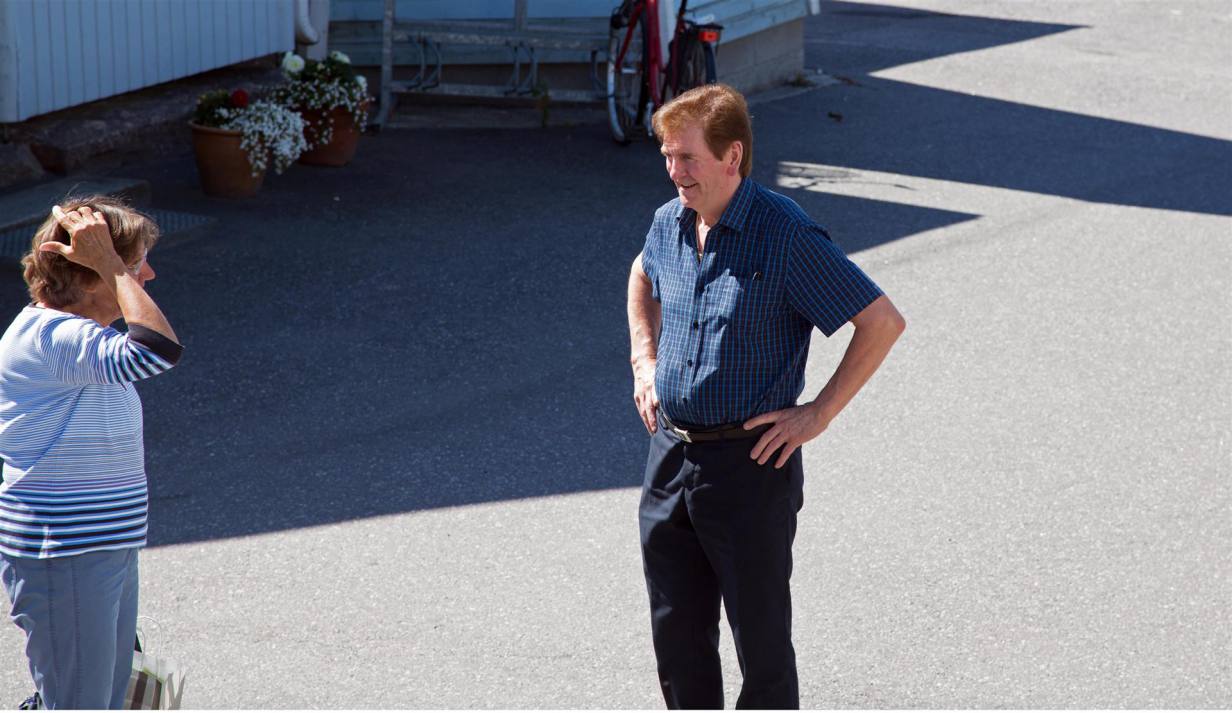 Da es gerade Mittagzeit war sind wir in ein schönes blau gestrichenes Restaurant gegangen. Dabei haben wir den früheren Olympiasieger in der Staffel und Bronze Medaillengewinner im 15 km Langlauf von Innsbruck im Langlauf Arte Koivisto kennengelernt. Er hat das Restaurant vor Jahren gekauft, als er mehrmals von Kokkola, wo er wohnte, nach Kaskinen musste weil ein Schmid ihn etwas machen sollte, aber nie fertig wurde. Da hat er gesehen dass alles zum Kauf ausgeschrieben war. Er hat es übernommen und nun einen schönen Betrieb aufgebaut mit Restaurant, Hotel, Räucherei und Savusauna. (Rauchsauna). Wir haben gut Fisch gegessen und uns anschliessend noch am Meer in einer Schaukel an der Sonne ausgeruht. Unser Spaziergang ging nachher weiter bis ans Ende der Insel, wo noch ein alter Stadtteil direkt am Meer ist mit Fischerhütten und Fischräuchereien. Am Schluss haben wir am Gasthafen an einem kleinen Restaurant noch den „Zvieri“ genommen. Richtig geraten , Kaffee und Kuchen. Ich genoss anstelle des üblichen Nachmittagsprozedere ein Finnisches Eis !! Herrlich bei den Temperaturen. Nach rund fünf Stunden Aufenthalt machten wir uns wieder auf den Weg für die letzten Kilometer zu unserem Tagesziel in Kristiinankaupunki.