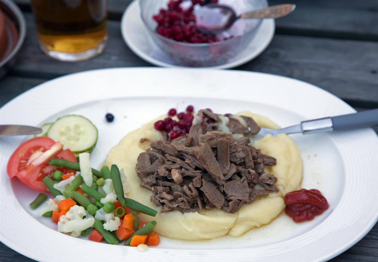 Gestern Abend haben wir uns entschieden einen Ruhetag einzulegen, obwohl wir es eigentlich nicht nötig haben. Aber der Ort ist so paradiesisch das es sich lohnt zu bleiben. Wir sind bis ein Uhr in der Nacht noch Draussen gewesen bei heiterem Sonnenschein wie die Bilder beweisen. So haben wir n am Morgen etwas länger geschlafen. Nach dem Frühstück mussten wir einmal das Wohnmobil aufräumen. Der Staubsauger den ich mitgenommen hatte wurde zum ersten Mal eingesetzt um den Sand aus allen Ritzen zu saugen. Jetzt sieht es wieder besser aus. Anschliessend wollten wir einen Spaziergang dem Fels entlang machen. Der Weg ist aber eher etwas für Berggänger mit guter Ausrüstung die wir nicht hatten. Trotzdem sind wir rund eine Stunde unterwegs gewesen bevor die heiklen Passagen kamen. Dann drehten wir um und liefen zum Wohnmobil zurück um die Seele etwas baumeln zu lassen, sprich in den Stühlen die Sonne anzubeten. Gegen drei benutzen wir die Gelegenheit, dass es hier am Ende der Welt beim Bobilcamp wie der Stellplatz auf Norwegisch heisst ein recht gutes Restaurant mit Fisch und Elch auf der Speisekarte. Genüsslich probierte ich Elch und Tuulia nahm die Fischsuppe. Nicht fehlen darf wieder der Kuchen mit Kaffee. Ach ja das habe ich noch vergessen zu sagen. Wir waren bereits vor dem Spaziergang kurz bei Kaffee und Kuchen. Nun ruhen wir uns aus und bereiten uns auf Morgen vor wo es weiter geht.