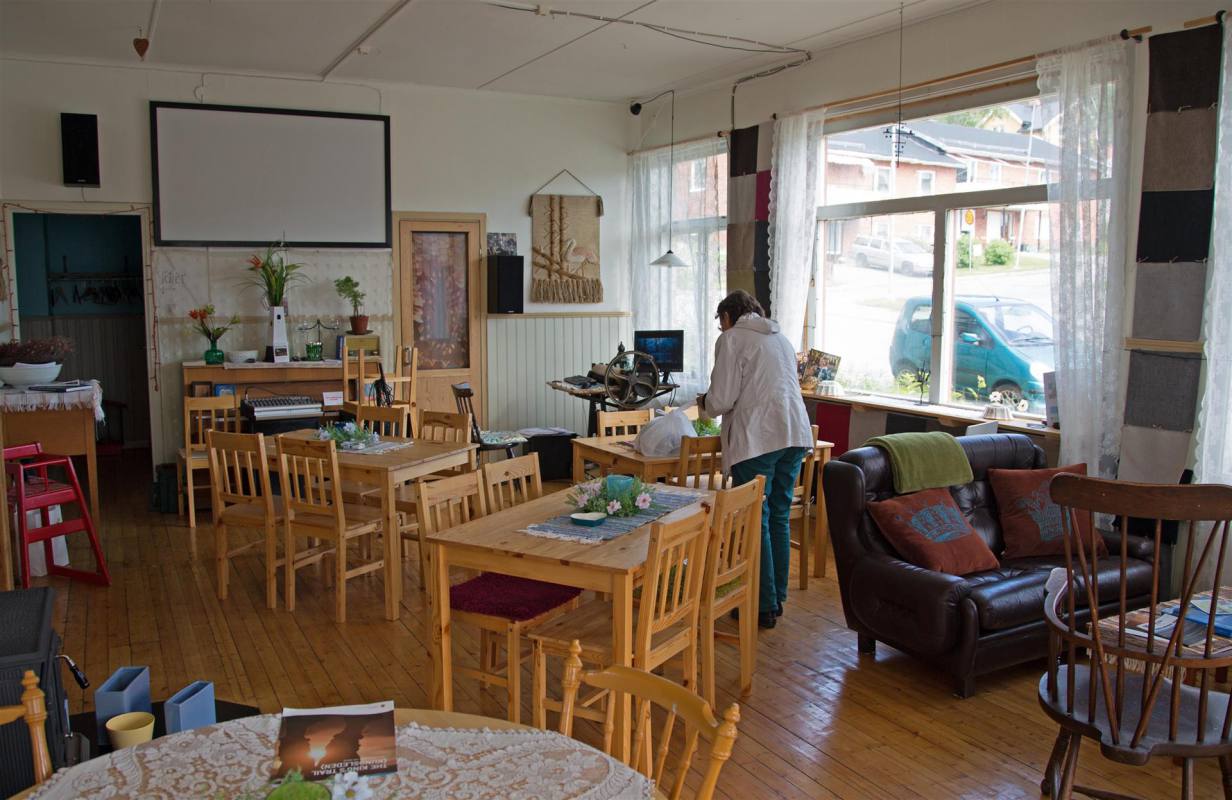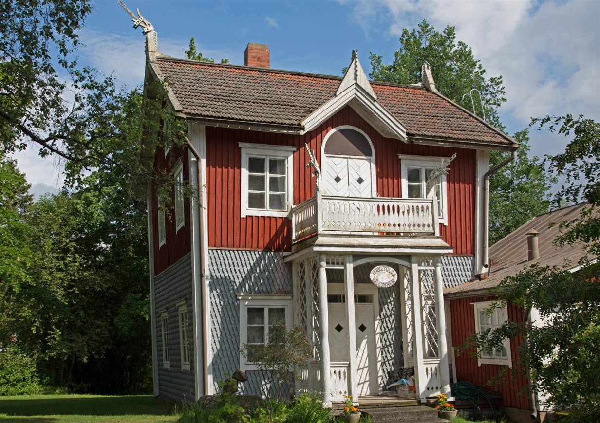 Nach den heftigen Gewittern am Abend ist es heute Morgen stark bewölkt aber schon 17 °C. Wir fuhren weiter, wenige Kilometer, nach Pietarsaari zum Svedenhaus. Das Haus auf dem Bild liegt in einem Park vor der Stadt. Es wird von einem Künstlerehepaar bewohnt. Gebaut wurde es von Viktor Schaumanin als Sommerhaus 1853. Das Künstlerehepaar bewirtschaftet das Haus nun und führt ein kleines Kaffee. In der Zwischenzeit mahlt er Bilder und seine Frau widmet sich der Muse. Sie leben sehr einfach. Es war interessant die Einrichtung und das Haus zu besichtigen
