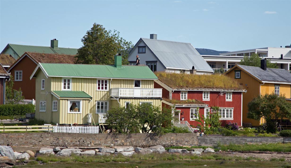 Mo i Rana ist eine Industriestadt mit 17‘000 Einwohnern zu ihr gehören grosse Eisen- und Stahlwerke. Dementsprechend ist es auch keine sehenswerte Stadt. Wir haben auf einem grossen Parkplatz nahe des Bahnhofes übernachtet. Es war zwar kein Durchgangsverkehr aber trotzdem war ziemlich viel Verkehr. Unsere Bedenken betreffend des Schlafes zerschlugen sich aber gegen Mitternacht wurde es merklich ruhiger, mit Ausnahme der Diesellock, die gegen 00.00 Uhr noch in den Bahnhof kam und einen ohrenbetäubenden Lärm machte. Gut ausgeschlafen konnten wir nach einem nur kurzen Fussweg die alte Stadt am Hafen besichtigen. Moholmen heisst dieser Stadtteil, der viele sorgfältig restaurierte und liebevoll herausgeputzte Holzhäuschen aus dem 17. Jahrhundert hat. Alle sind bewohnt. Am späteren Vormittag zogen wir weiter Nordwärts.