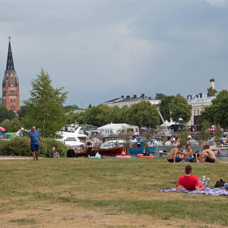 Die ganze Nacht hörte man Musik, obwohl wir rund 2 km Luftlinie von der Insel entfernt wohnen. Als erstes heute Morgen haben wir ein Auto organisiert, das wir Morgennachmittag abholen können, damit wir nicht immer mit dem grossen Teil herumfahren müssen. Ein Auto ist zwingend, wenn man etwas unternehmen will. Gegen Mittag spazierten wir in die Stadt. Zuerst suchten wir die Bibliothek auf wo es ein hervorragendes Internet gibt. Ich habe die Berichte Online gestellt, Mails beantwortet und noch schnell den Unterländer gelesen. Tuulia hat sich in dieser Zeit Lesestoff für die nächsten Wochen besorgt und die Zeitung gelesen. Im ersten Stock kann man alle Tageszeitungen von Finnland und dem Ausland gratis lesen. Es hat auch viele internationale Hefte zum Lesen