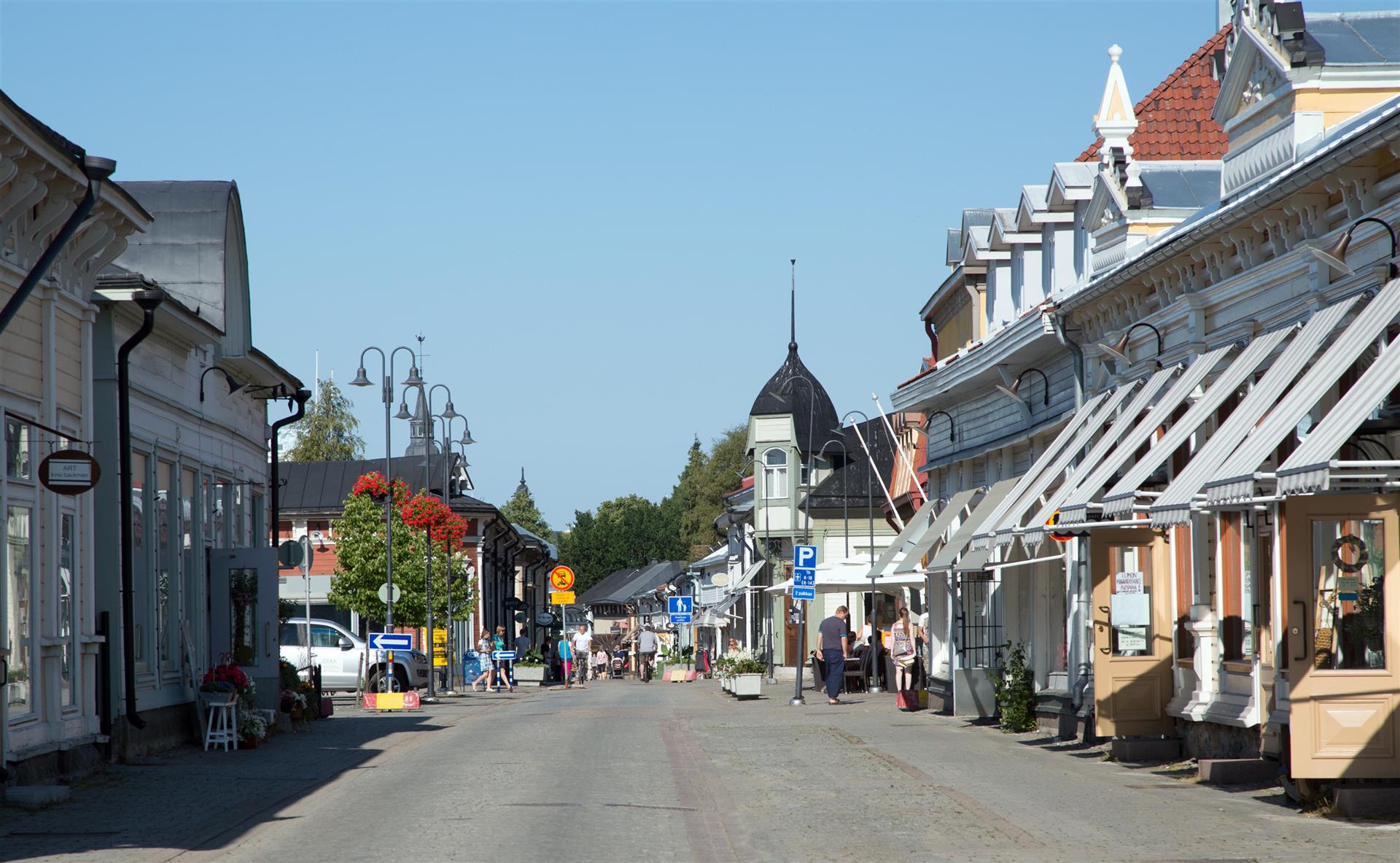 Bei herrlichem Sommerwetter genossen wir das Frühstück in Vaasa. Nachdem ich meine Berichte bearbeitet und hochgeladen hatte, entschlossen wir Kaskinen zu besuchen. Der Weg Richtung Süden war weiter geprägt durch riesige Kornfelder unterbrochen von einigen kleinen Gruppen von Bäumen. Wir fuhren auf der E08 rund 70 km. Bereits bei der Einfahrt ins Dorf sahen wir, dass es sich lohnte den Ort zu besuchen. Wir parkten auf einem riesigen leeren Parkplatz direkt am Meer. Eine Turi Info war direkt nebenan. So besorgten wir uns Material über das Städtchen. Es wurde 1649 von Per Brahe gegründet. Sie lag an einer günstigen Handelsstelle am Bottnischen Meerbusen. Die Innenstadt ist ein malerisches Milieu aus Holzhäusern des 18. Und 19. Jahrhunderts. Wenn man nach dem Plan, den wir vom Info bekommen haben durch das Städtchen läuft hat man das Gefühl, dass die Bewohner sich gegeneinander Anspornen ihre Häuser zu pflegen. Bei den Innenhöfen und Gärten ist einer schöner als der andere.