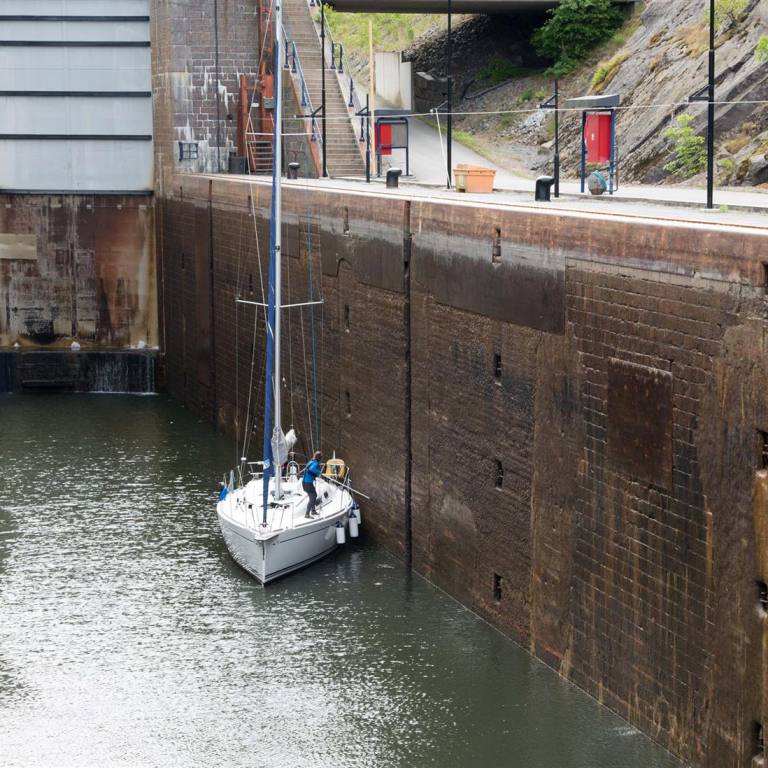 Nach dem Frühstücksbuffet auf dem Schiff begaben wir uns zuoberst auf Deck um den Einlauf in den Hafen von Göteborg zu bestaunen. Entgegen aller Meldungen waren sogar etwas zu früh in Schweden. Wahrscheinlich gelang der Crew in er Nacht doch noch alle Motoren in Bewegung zu bringen. Jedenfalls genossen wir bei fast wolkenlosen Himmel die Einfahrt zwischen den vielen kleinen Stein Inseln was beinahe einem Zick- Zack Lauf glich. Nun kam Ferienstimmung auf. Schnell konnten wir das Schiff zusammen mit den grossen Trucks verlassen. Am Zoll war niemand sodass es zügig voran ging. Wir parkierten direkt auf dem Parkplatz der Fähre. Keine gute Idee. Wir spazierten Richtung Stadt los. Nach einer halben Stunde merkten wir, dass es zu weit bis in die Innenstadt war. Also zurück zum Wohnmobil und Abfahrt Richtung Stadt. Kurz vor der Innenstadt fanden wir einen grossen leeren Parkplatz. Von da aus war es zwar immer noch weit aber machbar zu Fuss. Wir genossen bei recht warmen Temperaturen aber starkem Wind die schöne Stadt. Göteborg hat rund 450‘000 Einwohner und ist die zweitgrösste Stadt von Schweden. Bekannt ist die Stadt durch die Hauptverwaltungen von den Firmen SKF, Volvo und Hasselblad. Göteborg hat zudem den grössten Seehafen Skandinaviens. Auf unserem Stadtrundgang konnten wir nicht alle Sehenswürdigkeiten besuchen, da es Sonntag war. Somit konnten wir die Domkirche nicht anschauen weil Gottesdienst war. Die Markthallen im Zentrum waren ebenfalls geschlossen. Dafür war das Rosarium offen. Mehr als 3500 Rosenarten werden dort gezüchtet. Dies entschädigte uns für den abgesagten Besuch in Sangerhausen. Es ist ein grosser wunderschöner Park der neben den Rosen auch viele exotische und zum Teil auch seltene Bäume hat. Langsam kam Hunger auf als ich feststellte, dass ich die Währung noch nicht im Griff hatte. Ich hatte einige 50 Kronen Noten in die Tasche genommen. (Wert: knapp acht Franken ). Verwöhnt vom Euro ist man nicht mehr gewohnt zu rechnen. Also ich hatte wohl knapp 30 Franken dabei, was 210 Kronen bedeutete. Kein Problem sagte ich Tuulia und ging an einen Bankomaten. Dieser liebte mich aber nicht und zog mir die Karte ein und gab sie nicht mehr frei. Also wieder nichts mit Essen. Zum Glück habe ich zwei weitere bei mir. Nur waren diese im Wohnmobil. Also ging es weiter mit unserem Spaziergang. Auf dem Rückweg stiegen wir noch den Skansen Kronan hinauf. 185 Treppen steil den Hügel rauf. Es handelt sich um eine Festung aus dem Ende des 17 Jahrhundert. Die Anstrengung wird aber durch eine wunderschöne Aussicht auf die ganze Stadt belohnt. Da uns langsam die Füsse weh taten entschlossen wir das Wohnmobil aufzusuchen. Tuulia zauberte noch ein Mittagessen aus unserem Kühlschrank auf den Tisch. Am späteren Nachmittag machten wir auf den Weg nach Trollhättan.. Dort besuchten wir noch das riesige Kraftwerk wo das Wasser an einigen Tag der Woche als Attraktion neben der Schleuse in einem Canion abgelassen wird. 300‘000 Liter pro Sekunde donnern dann das alte Flussbett hinunter, Leider war das bei unserem Besuch nicht der Fall. Wir fuhren am Kraftwerk vorbei zu den Slussaren (Schleusen). Wir fanden nahe der grossen Schleusen beim Kanalmuseum einen ruhigen Parkplatz zum übernachten.