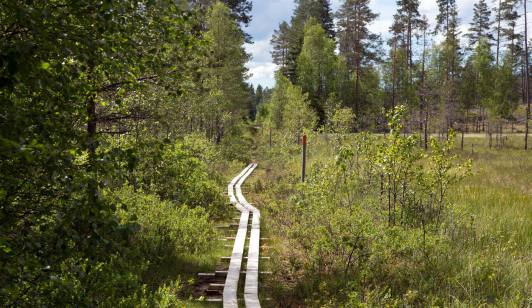 Am Morgen als wir auf dem schön gelegenen Campingplatz aufstanden war es wolkenlos. Nach dem Frühstück wollten wir weiter Richtung Mora. Auf der Infotafel vor dem Campingplatz sahen wir in der Nähe ein Kulturreservat. Da es wenige Kilometer vom Platz weg war beschlossen wir einen kurzen Halt einzulegen. Diese Sehenswürdigkeit erwies sich aber als Kriegsdenkmal. Wir drehten ab und merkten da dass wir den Schlüssel von den Sanitärgebäuden noch im Wohnmobil hatten. Also nochmals 10 km zurück und pflichtbewusst abliefern. Jetzt konnten wir endgültig starten. Wir kamen zügig voran, da es kaum Verkehr hatte und die Strassen gut waren. Es geht immer aufwärts, dann wieder abwärts. Unterwegs fanden wir dann doch noch eine Tafel mit einem echten Naturreservat. Wir bogen ab und nach 3 km kam im Wald eine Infotafel wo auch bereits schon ein Deutsches Wohnmobil stand. Wir spazierten etwa einen Stunde in schönster Natur.