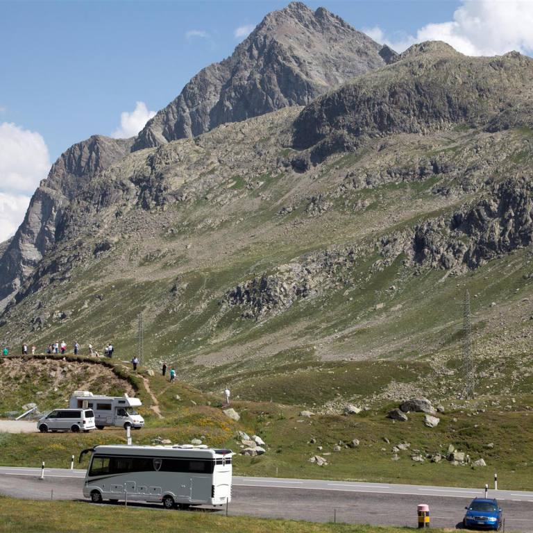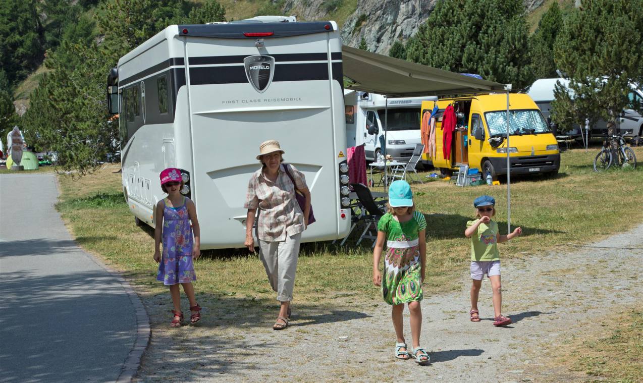 Nach einer knappen Stunde hiess es anziehen und den Weg zurück unter die Füsse nehmen. Es ging aber nicht mehr den langen Weg zurück. Wir stiegen einige Höhenmeter hinunter und stellten fest, dass es unten auch noch einen Stellplatz für Wohnmobile gab. Auf der Ebene mussten wir noch mehr als ein Kilometer unter der warmen Sonne laufen ehe dann St. Moritz Bad kam wo wir dann das Postauto bestiegen. Ein langer Tag neigte sich dem Ende entgegen. Als wir zu Abend essen wollte, kam nochmals Elfriede zu Besuch und kurz darauf kam auch ein Gewitter, das aber harmlos verlief. Die Abkühlung tat aber gut. Die Kinder gingen gegen neun Uhr gerne ins Bett, womit auch schnell Ruhe im Mobil eintrat.