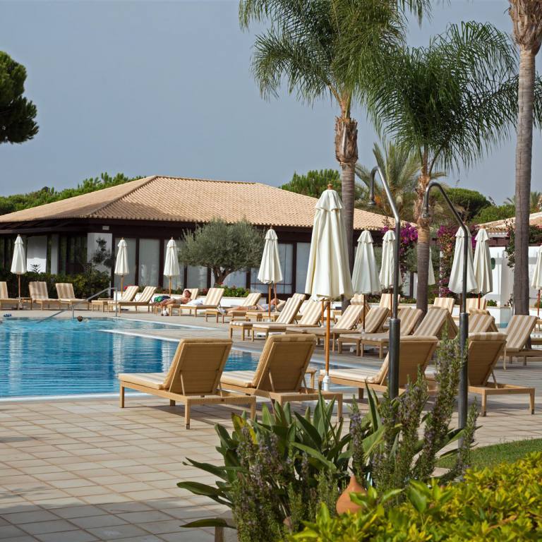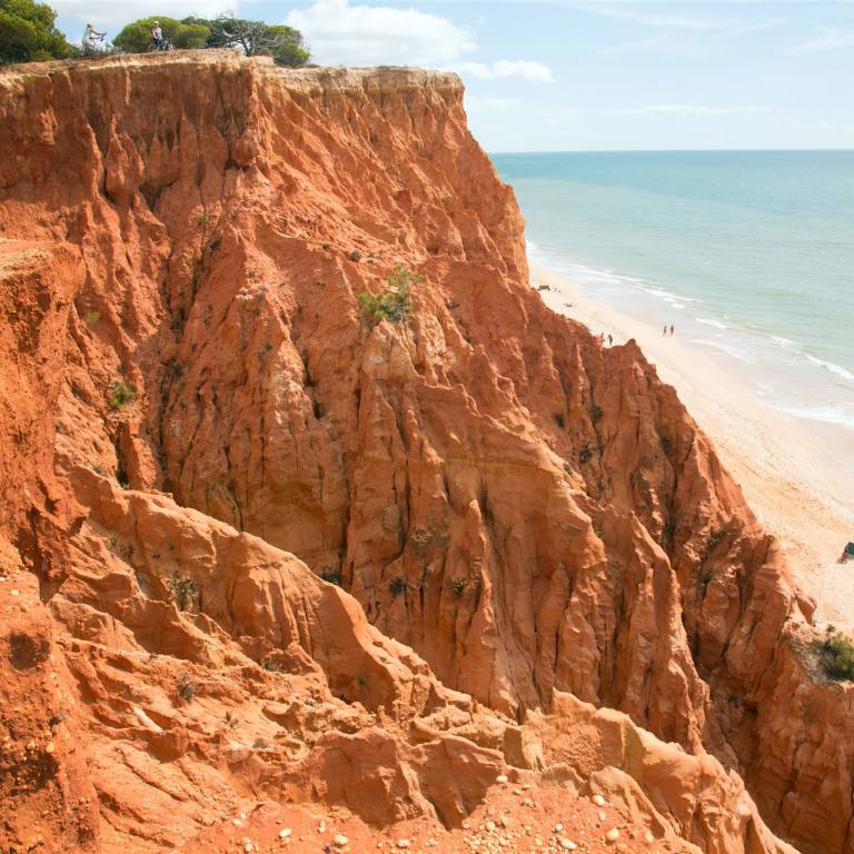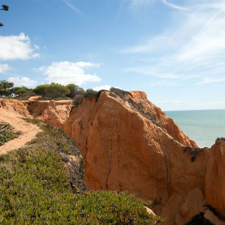 Nach dem Frühstück, natürlich wieder auf der Gartenterrasse am Pool erkundeten wir zuerst einmal die riesige Anlage. Das Pine Cliff Resort liegt auf einer Klippe, umgeben von Pinien mit Blick auf den Atlantik. Weiter hat die Anlage 2 Pools, einen Tennisplatz, einen Wellnessbereich mit Whirlpool und einem nahegelegenen Golfplatz. Die hellen Suiten und Villen im Pine Cliffs Resort sind mit Korbmöbeln und gefliesten Badezimmern ausgestattet. Pine Cliffs Resort liegt im Naturschutzgebiet Aldeia. Das gesamte Areal ist wunderschön angelegt mit Pinien, Pflanzen und schönen Wegbeleuchtungen in der Nacht. Wir benützen den Tag an dem es immer wieder bei 25° C leicht regnete zu einem Spaziergang ans Meer. Ein Lift führt direkt zum Strand.
