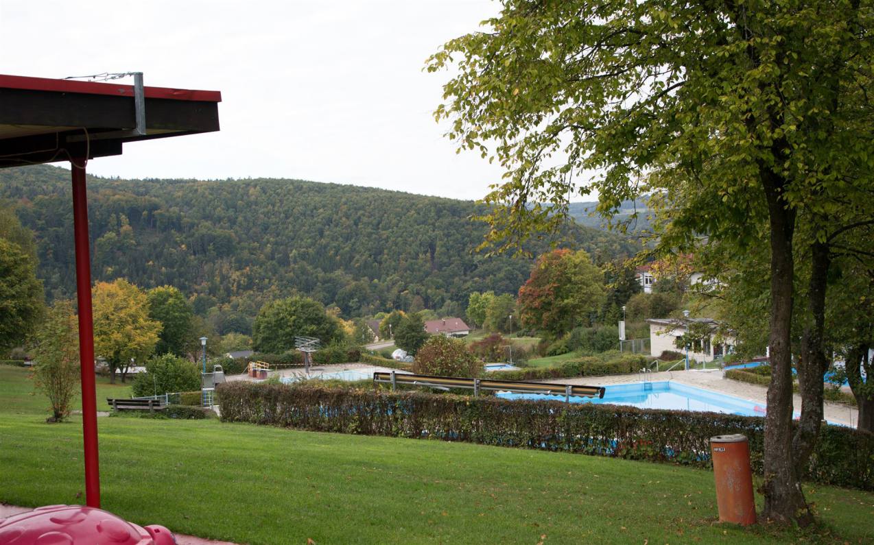 Die Gemeinde bietet auf einige Plätze an. Die Plätze sind teilweise abschüssig. Neben uns war nur ein anderes Wohnmobil vor Ort. Es soll auch Strom geben. wir benötigten aber keines, zumal auch niemand anwesend war, da die Badesaison bereits beendet ist. Zu Fuss ging es dann relativ steil bergab. Der Weg ist aber kurz, rund 10 Minuten abwärts, aufwärts vielleicht einige Minuten länger je nach Kondition. Zuerst schauten wir rasch am Festzelt vorbei, wo noch nichts los war. Es wird 4 Tage ein Oktoberfest gefeiert der Brauerei Zwiefalter Klosterbräu , die praktisch neben dem Festzelt sich befindet.