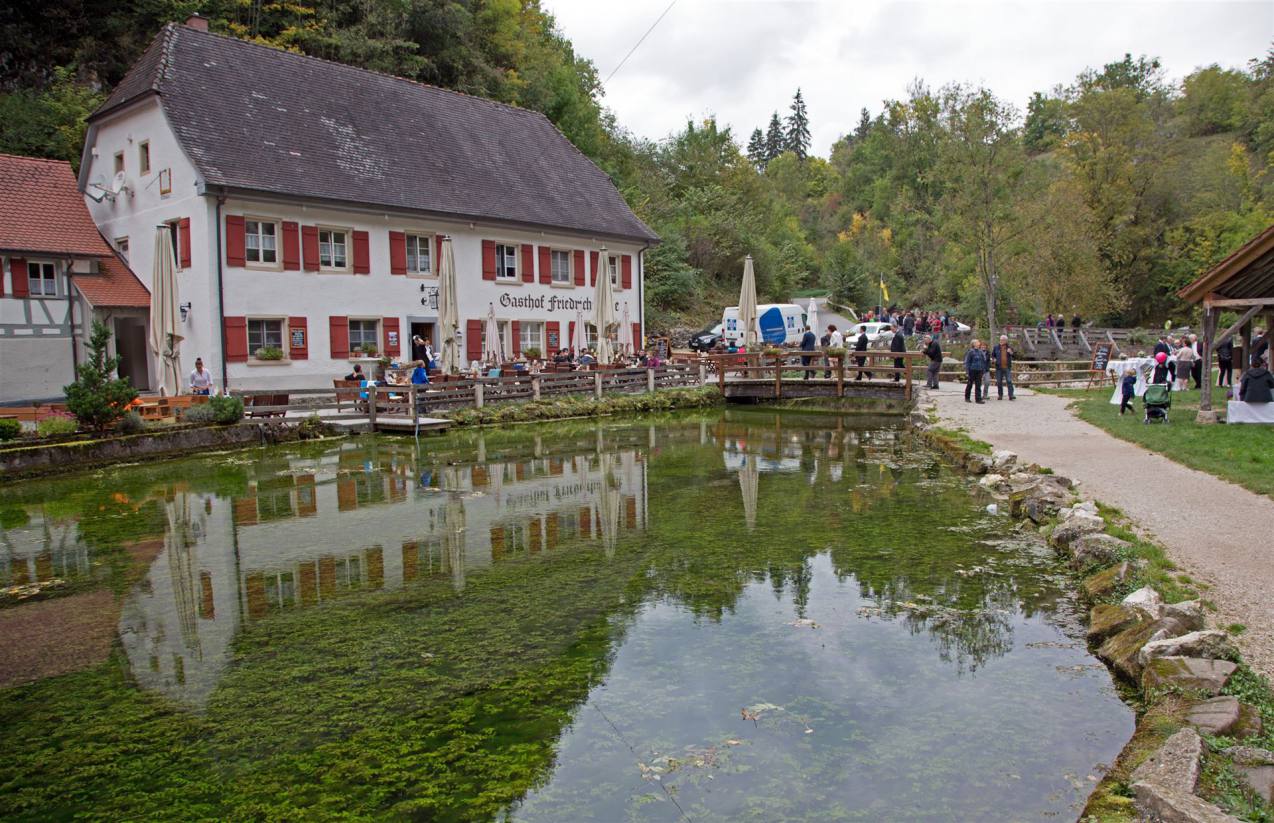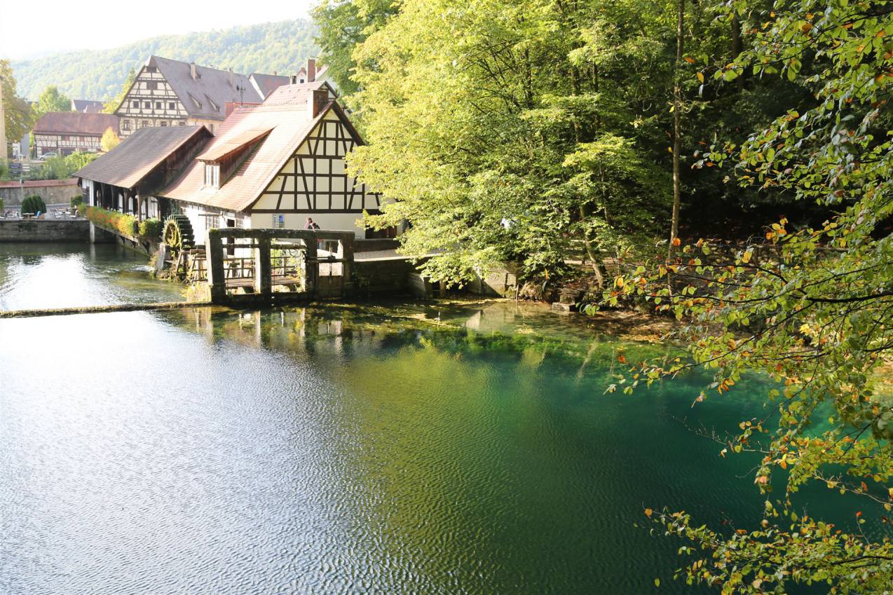 Nach dem Frühstück starteten wir früh zur Entdeckungstour von Blaubeuren. Wie sich nach herausstellte keine schlechte Idee. Gegen Mittag wurde es langsam voll. Kaum eine Stadt in Deutschland ist so mit der Geschichte der Erde verbunden, wie Blaubeuren, ein Kleinod der Schwäbischen Alb. Die Attraktion des kleinen Städchens ist der Blautopf. Seit hunderttausenden Jahren sprudeln zwischen 800 und 200`000 Liter Wasser pro Sekunde aus dem Boden. Je nach Lichteinfall in blau, türkis, grünblau oder azurblau. Das Wasser kommt aus 160 Quadratkilometer Umgebung zusammen. aus einer Tiefe von 22 m.