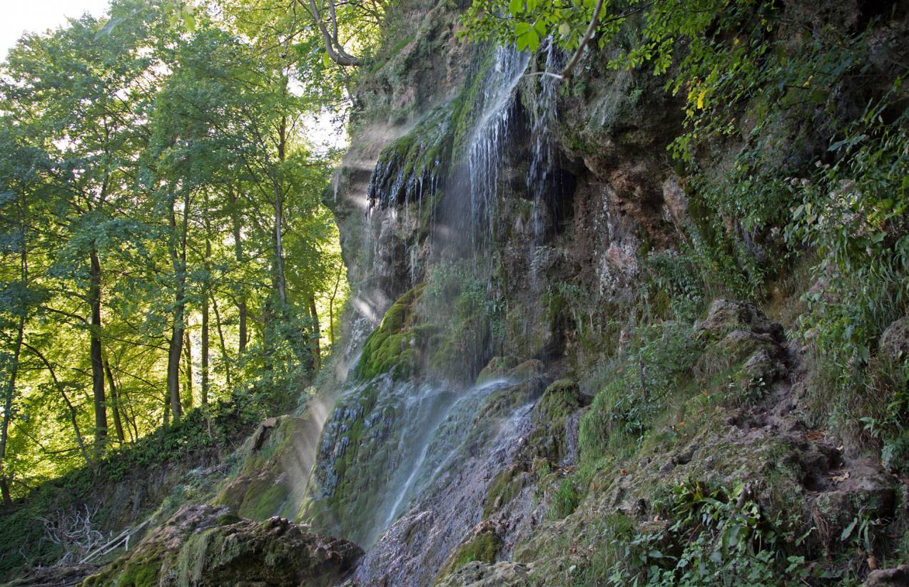 Der Uracher Wasserfall befindet sich am südwestlichen Stadtrand Bad Urachs im Maisental, einem Seitental der Erms. Hier stürzt der Abfluss der am Rande der Schwäbischen Alb entspringenden Quelle des Brühlbachs 37 Meter frei in die Tiefe, schlägt auf einer Kalktuffstufe auf und fließt weitere 50 Meter über ein steil abfallendes moosbewachsenes Kalktuffpolster ab. Je nach Wassermenge bilden sich dabei mehrere Wasserarme, die dann wieder als Brühlbach zusammen- und weiterfließen. Durch die geringen Niederschläge in diesem Jahr war die Wassermenge doch etwas spärlich. Trotzdem war alleine die Bewachsung des Hanges und die Wege des Wassers sehenswert. Natur Pur konnte man erleben.