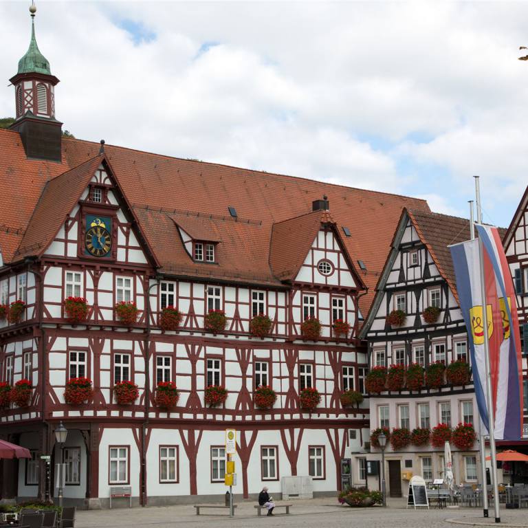 Nach dem Spaziergang zum Wasserfall fuhren wir mit dem Wohnmobil noch in die Stadt Bad Urach. Auf dem P16 gibt es genügend Platz auch für ein grosses Fahrzeug. Von da aus sind es gerade mal 5-10 Minuten zu Fuss ins Zentrum. Das kleine und feine Kurstädchen bietet einiges an Sehenswertem. Die Innenstadt ist mit prächtigen Fachwerkhäusern einem Residenzschloss, das leider am Montag geschlossen war und einer herrlichen Umgebung bestückt. Nach einem Rundgang gingen wir Mittagessen. Das war dann auch schon der Abschluss des viertägigen Schwäbischen Alb Besuches. Es ist eine schöne Gegend die wir sicher nochmals besuchen werden.
