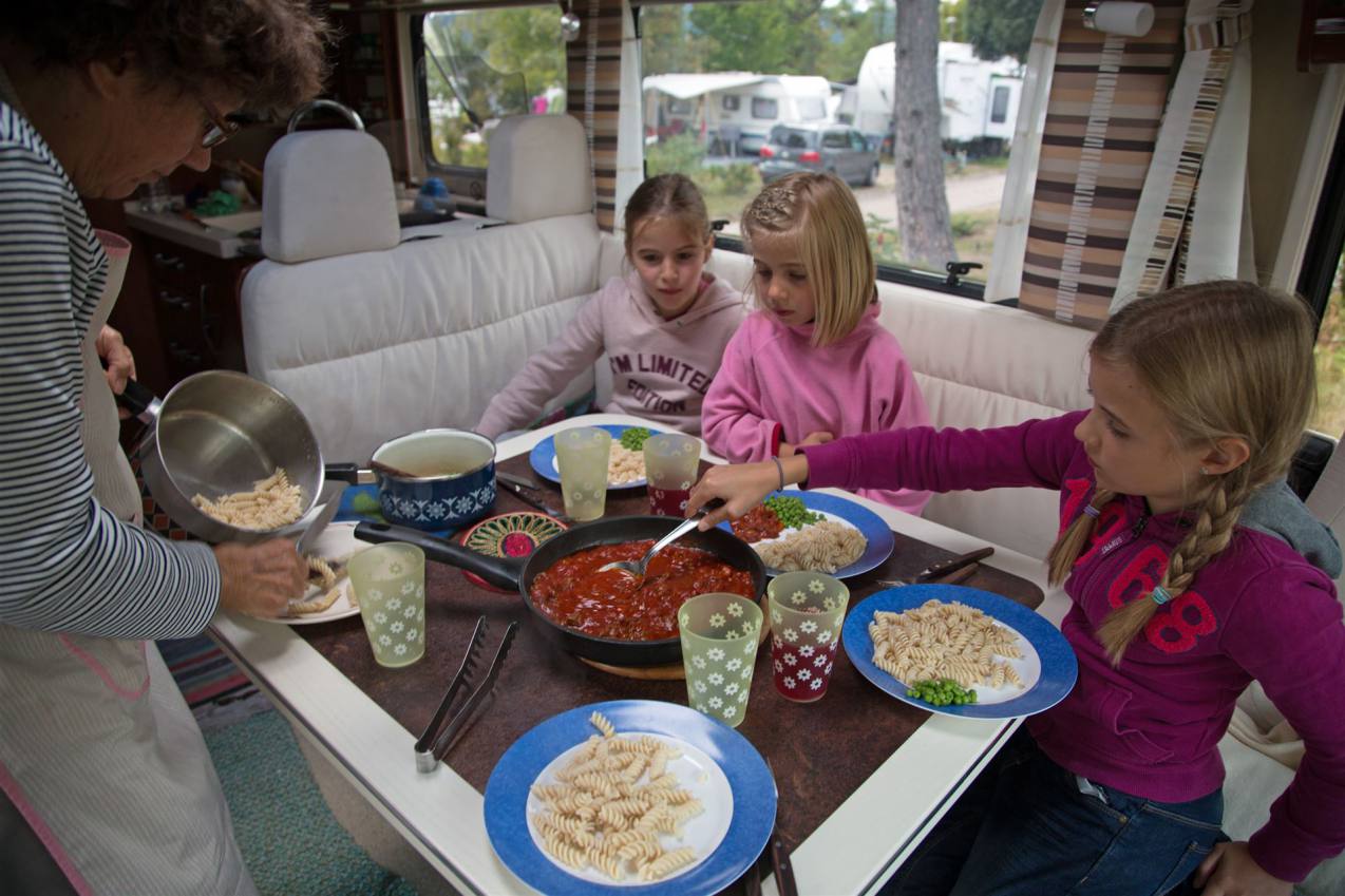 Nach einer ruhigen Nacht war erst um 09.00 Uhr Tagwache. Da unser Brot zu Hause blieb und der Campingladen in der Nebensaison keine Brötchen liefert war ich gezwungen mein Velo aus der Garage zu nehmen und 800 m zum nächsten Laden zu radeln. Es gab wunderbare frische Brötchen aber leider nur für die Erwachsenen, da die Kinder an Zöliakie leiden. Die Kinder hatten ihr eigenes Brot. Wir genossen das Frühstück, das eher einem Brunch ähnelte. Es wurde elf Uhr ehe wir uns langsam nach Draussen begaben. Die Sonne schien am Morgen bei einem eisigen Wind. Die Kinder tummelten vor dem Wohnmobil, wobei Finja mit den beiden anderen eine Trainingslektion machte.