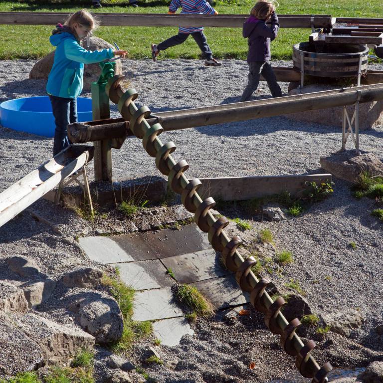 Nach der Umrundung des Schlüchtsees ging es zurück zum Wohnmobil, wo Tuulia gegen 15.00 Uhr das Mittagessen bereitmachte. Gleichzeitig konnten wir uns wieder etwas wärmen. Ein weiteres Highlight stand noch auf dem Programm. Die Rothaus Brauerei hat hinter dem Haus einen grossen Abenteuerspielplatz. Besonders beliebt sind die Wasserkanäle. Aus dem vorbei fliessenden Bach kann Wasser mittels einer Spirale geschöpft werden. Überall kann gespeichert werden und durch öffnen der Speicher Wasserräder in Betrieb gesetzt werden. Stundenlang können sich die Kinder damit beschäftigen. Leider waren die Temperaturen nicht gerade einladend zum Wasserspeilen. Unberührt aber wurde trotzdem damit gespielt.