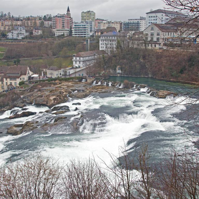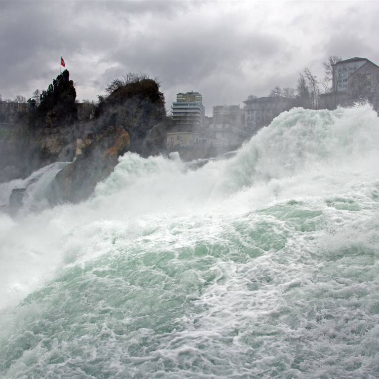 268000 Liter Wasser in der Sekunde fielen gestern den Rhein hinunter. Auf verschiedenen Terrassen kann man zuschauen wie ein gigantischer Strom die Felsen herunterfällt. Hier einige Zahlen zum Rheinfall.
