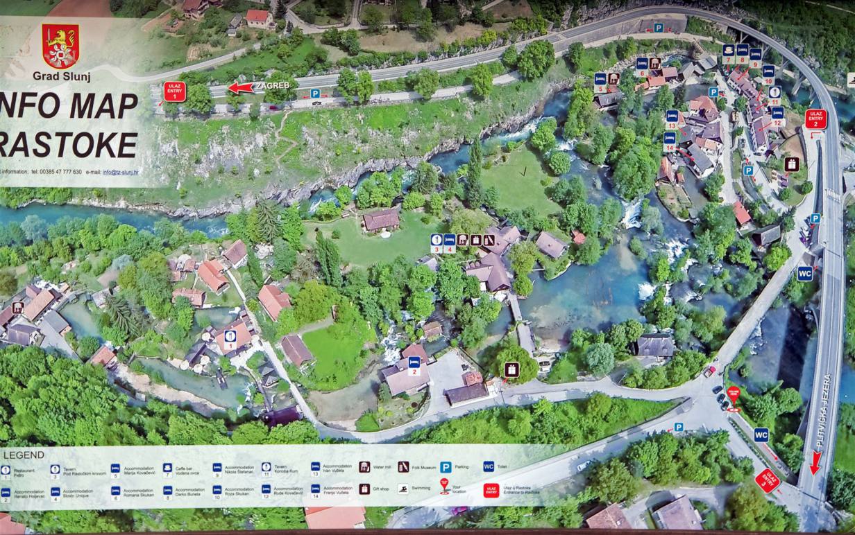 Die Rastoke stellen den historischen Kern der kroatischen Stadt Slunj dar, welche am Zusammenfluss der Flüsse Slunjčica und Korana liegt. Die Bezeichnung Rastoke lässt sich im Deutschen auf die folgenden Bedeutungen zurückführen: Einerseits ist dies eine Flussverzweigung. Die Slunjčica, welche von der lokalen Bevölkerung Slušnica genannt wird, wird an dieser Stelle in mehrere kleine Flussarme geteilt. Sie fließt dann über zahlreiche Kaskaden und kleinere Wasserfälle in die Korana. Andererseits wird so Kalkgestein bezeichnet, aus dem mittels Kohlensäure Calciumcarbonat gelöst wird. Somit bildet sich stets neues Gestein durch gelöstes und wieder sedimentiertes Calciumcarbonat. In Rastoke kann man in etwas kleinerem Format die gleichen Naturphänomene beobachten, welche auch für die Plitvicer Seen charakteristisch sind. Daher werden die Rastoke oft auch als die „kleinen Plitvicer Seen“ bezeichnet. Als Korana bezeichnet man den Fluss, der nach den Plitvicer Seen weiter gen Norden fließt. Slunj und die Rastoke sind also auf dem Wasserweg direkt mit den Plitvicer Seen verbunden. Entlang der Flussverzweigungen der Slunjčica entstand die Stadt Slunj. Bereits im 17. und 18. Jahrhundert wurden hier auch zahlreiche Wassermühlen errichtet. Diese idyllischen Mühlen waren noch bis Mitte des 20. Jahrhunderts in Verwendung. Auch heute noch kann man die Funktionsweise einiger dieser Mühlen und den damaligen Alltag der Bevölkerung kennenlernen.