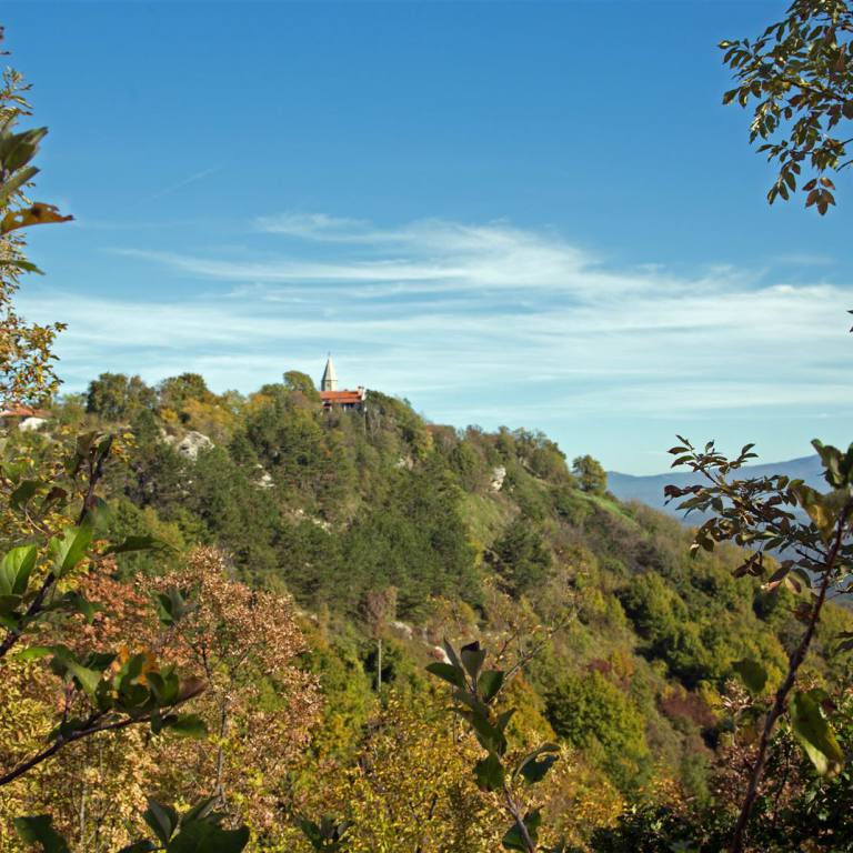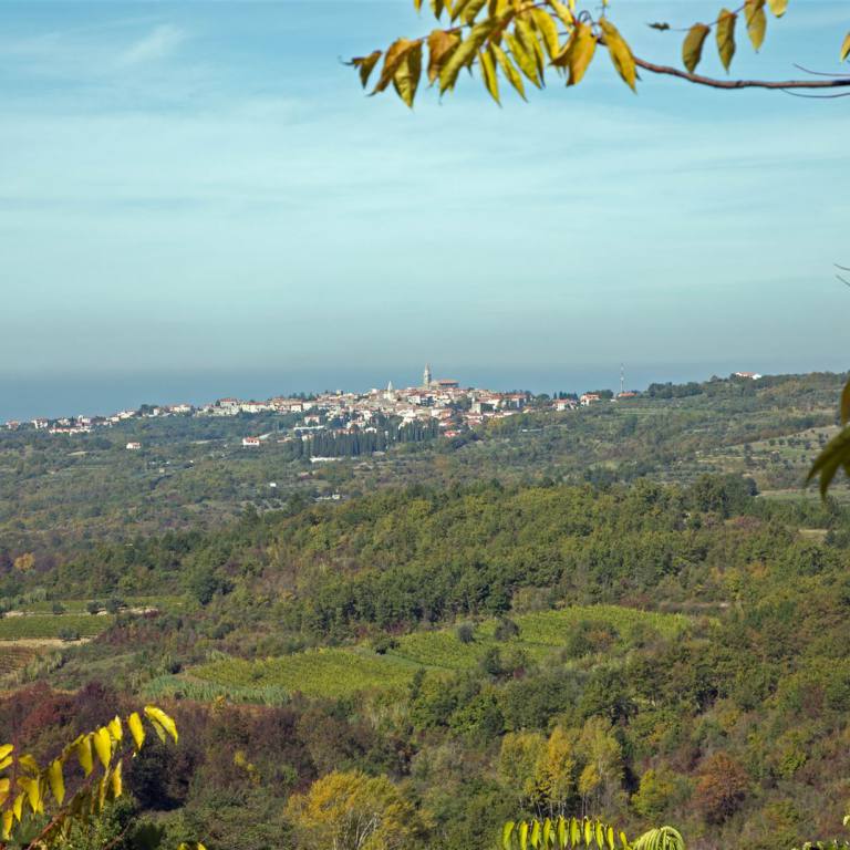 Von unserem Wohnmobil Fenster sahen wir direkt über das Meer nach Rijeka. Es war wieder ein schöner Tagesbeginn. Nach dem Frühstück halfen wir zuerst noch unseren Nachbarn sein Fahrzeug das er in der Nacht etwas unglücklich parkiert hatte wieder auf den Weg zu bringen. Die Plätze vom Camping waren sehr uneben für Wohnmobile. Ich habe meinen Kupplungshacken vorne montiert und den 4 Tönner herausgezogen. Der Lohn war eine Flasche Wein. Wir fuhren auf der Seestrasse weiter Richtung Pula. Nach rund 40 km Bogen wir ab Richtung Pazin-Baderna-Buje. Zweimal kamen wir auf eine kleine Anhöhe, auf der man schöne Ausblicke in die weite Landschaft hatte.