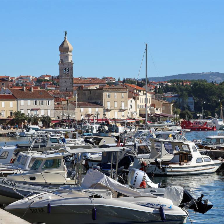 Heute war ein besonderer Tag. Tuulia hatte Geburtstag. Der Himmel wie immer in den letzten Tagen wolkenlos. Als die Sonne kam war es sofort warm. Man merkt das man im Süden ist. Nach dem Frühstück spazierten wir den Hang hinunter. Das Camp Bor liegt rund 500 m von der Stadt entfernt. Es ist terrasiert angelegt mit schöner Aussicht auf die Stadt und das Meer. Krk ist eine kroatische Insel im Mittelmeer und nach neueren Messungen größte Insel in der Adria. Sie liegt in der Kvarner-Bucht südöstlich von Rijeka. Durch die Krk-Brücke ist Krk seit 1980 mit dem Festland verbunden. Auf der Insel leben rund 17.800 Menschen.