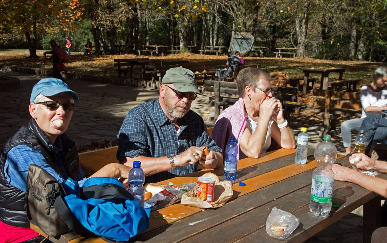 Wir entschlossen für eine weitere Nacht auf dem herrlichen Camp zu bleiben, zumal wir direkt an der Adria stehen. Heute war der Nationalpark Plakenica auf unserem Programm. Unsere beiden lahmenden Herren Fredy und Rolf zogen es vor im Camp zu bleiben. Also zog ich mit den drei Frauen, Rucksack und Verpflegung los den Nationalpark zu erkunden. Wir fuhren nur wenige Minuten bis zum Eingang des Parks. Ein Ranger und eine Angestellte empfing mich mit der Frage: Ist das ein Bus oder Wohnmobil ? Wir stellten das Fahrzeug ab und machten uns auf den Weg. Wir parkten direkt beim Eingang, wo es auch Platz für Busse gab. Der Nachteil es hätte noch 6 andere Parkplätze weiter oben gehabt. Also marschierten wir rund eine Stunde bis zum ersten richtigen Anstieg. Glücklicherweise hatte es dort ein Besucherzentrum, das ehemals durch die ex jugoslawische Volksarmee gegraben und als Schutzbau für die die damalige Parteispitze gedacht war. Heute ist es ein bestens ausgebautes Schulungs-zentrum mit Kaffee. Nach einer kurzen Pause legten wir los.