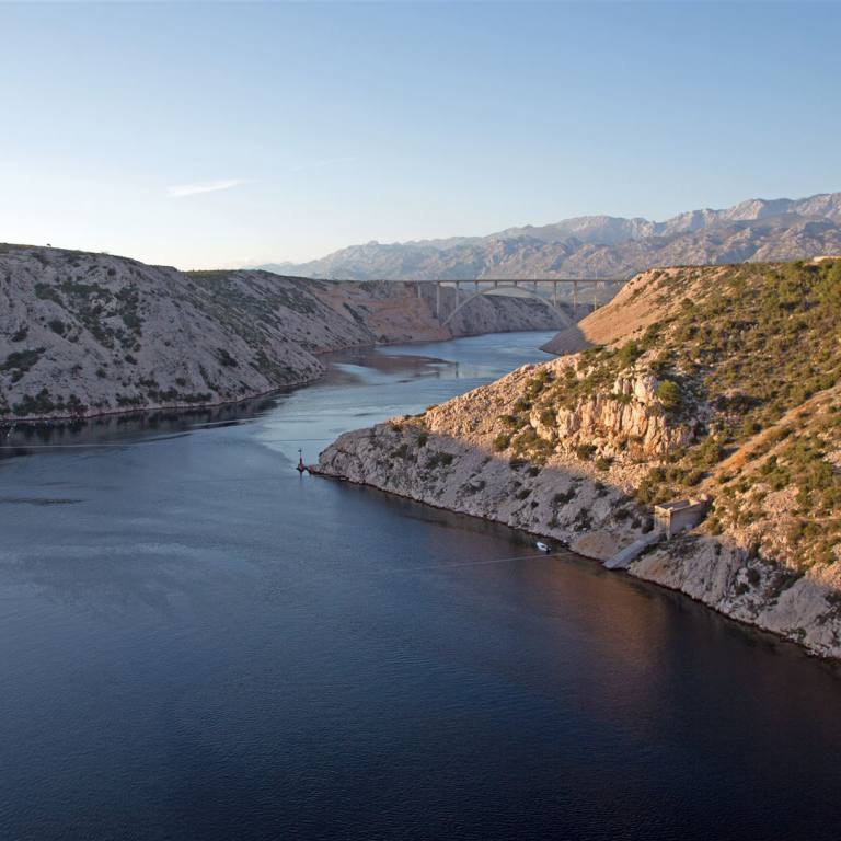 Als wir am Morgen die Jalousien hochzogen staunten wir nicht schlecht. Es hatte ganz feinen Seenebel. Dieser begleitete uns dann noch einige Zeit während der Fahrt. Die Sonne drückte zwar immer wieder durch, konnte sich aber noch nicht durchsetzen. Bei einem kleinen Halt für eine Kaffee Pause zogen wir ein Knöllchen ein. Wir haben auf dem Busparkplatz rasch parkiert und hatten prompt alle einen Straffzettel am Scheibenwischer. Gegenüber war der Polzeiposten den wir sofort aufsuchten. Der stämmige Polizist wollte aber nichts wissen. Er verwies uns auf die Post. Wir lassen es mal drauf ankommen. Die Fahrt ging weiter der Küstenstrasse entlang. Sie schlängelte sich von Bucht zu Bucht. Dabei konnten wir atemberauschende Aussichten, von der Strasse die sich etwas am Berghang entlang schlängelte, sehen. Kurz vor Rjeka zweigt die Strasse Richtung der Insel KRK ab. Es kommt eine Zahlstelle für die imposante Brücke auf die Insel.