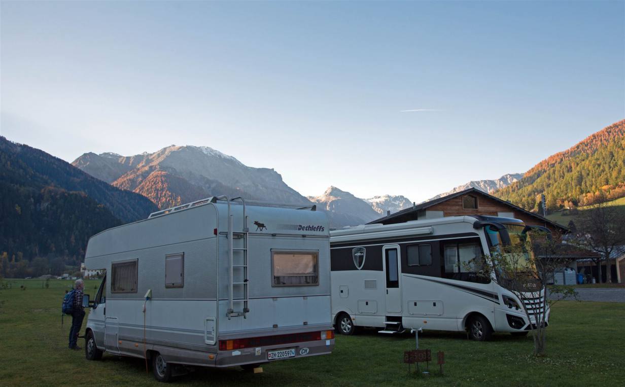 Wir genossen die wunderbare Aussicht. mit den letzten Sonnenstrahlen. Nach kurzer Pause im Wohnmobil gingen wir Essen. Kurz nach sechs Uhr gingen wir ins Restaurant zum Abendessen. Das Preis-Leistungsverhältnis dieses Hauses ist excellent. Das Essen hervorragend und schnell serviert. Nachdem wir den Hunger und den Durst gestillt hatten ging es zurück ins Wohnmobil Inzwischen waren noch vier weitere Mobile eingetroffen. Nun haben wir Zeit noch das Qualifikationsspiel der Schweizer anzuschauen. Anschliessend ging es ins Bett.