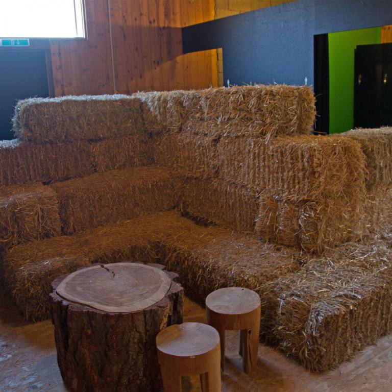 Nun hatten wir aber noch den Zvieri verdient. Der Campingplatz ein schönes Restaurant wo man auch Kaffee und Kuchen geniessen kann. Wir setzte uns an die Sonne und genossen die letzten Sonnenstrahlen. Für Fredy und mich war aber noch nicht Feierabend. Wir haben gestern gelesen, dass es eine Heustock Sauna geben soll. Die wollten wir ausprobieren. Also bewaffneten wir uns mit Handtüchern und zogen zum Saunen. Eine Treppe führte zum ehemaligen Heustock. Und siehe da der Raum war sehr hoch mit Holzträgern. Es gab verschiedene Ruhezonen mit Stühlen aber auch mit Strohballen. eine gute Dusche zum reinigen fehlte nicht. Die Atmosphere und die Düfte einfach traumhaft. Wir genossen die Stunde.