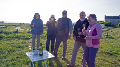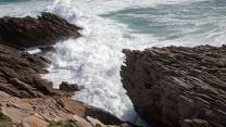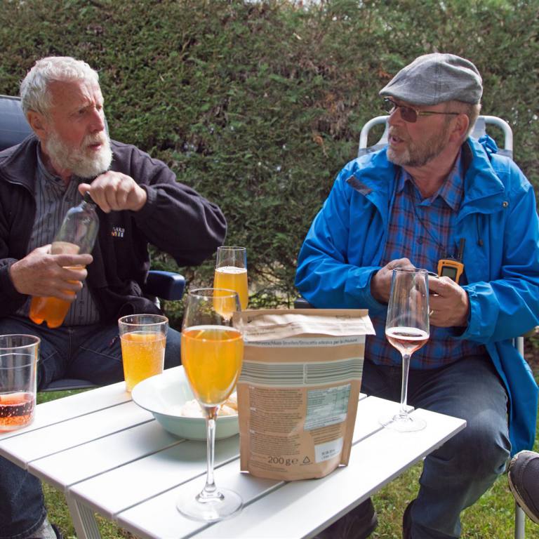 Nachdem alle richtig standen war Apéro Zeit. Da wir nun wirklich im Lauch stehen und von einem Restaurant weit und breit nichts zu sehen müssen wir selber kochen. Rolf warf den Grill an und wir kratzten alle Würste zusammen. Jeder stellte etwas auf den Tisch. Besonders beliebt war die Rösti von Liselotte und Fredy. Als Verdauungsmarsch bewegten wir uns auf die Felsen am Meer. Die Brandung ist faszinierend . Das glasklare Wasser wird an die Felsen gepresst und geht schäumend wieder zurück. Ein imposantes Schauspiel das die Wucht des Wasser zeigt. Baden ist hier verboten was verständlich ist wenn man die Kraft der Brandung beobachtet. Die Natur hier einfach umwerfend.