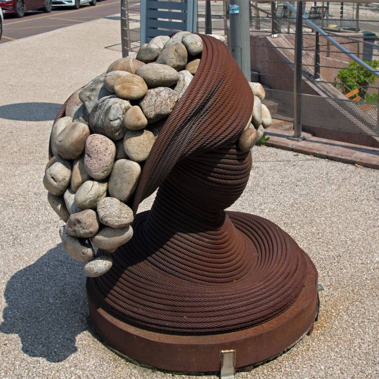 Heute war der Besuch der Insel auf unserem Programm. Wir gingen um neun Uhr zur Busstation, wo ein Gratis Busshuttle die Besucher über den langen Steg zur Insel bringt. Im Rahmen des Renaturierungsprojekts zur Wiederherstellung des maritimen Charakters des Ortes bietet die neue Brückenüberführung dem Besucher einen ganz neuen Blick auf die Bucht. Der Staudamm (1.085 Meter) ist leicht gen Osten versetzt und endet schließlich als Brückenüberführung (760 Meter).