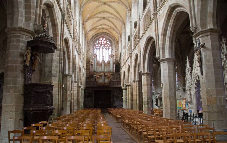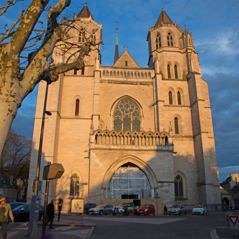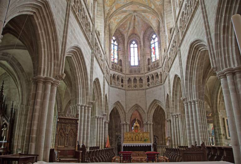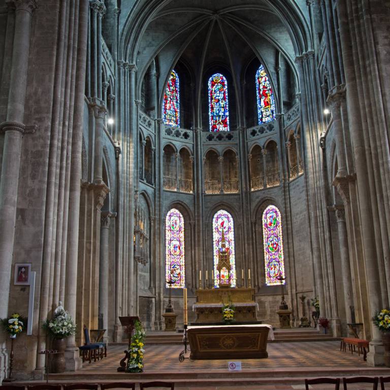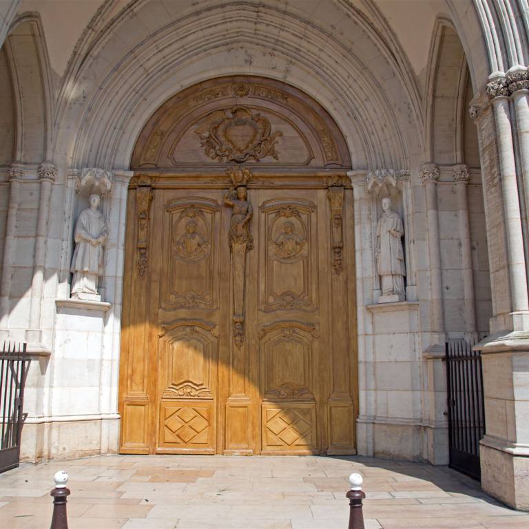 Mitten in der Stadt ist die schöne Kathedrale zu besichtigen. Diese ehemalige Benediktinerkapelle wurde zwischen 1698 und 1713 im italienischen Stil erbaut. Die Fassade, die im 19. Jh. erneuert wurde, ist sehr imposant. Im Innern befinden sich Statuen aus dem 17. Jh., ein geschnitztes Chorgestühl und eine Régence-Orgel, über der sich ein Harfe spielender Saul erhebt. Die Eingangstüre ist aus Holz und sehr hoch. Ihre Fassade und ihre neugotischen Glockentürme verleihen dieser Kirche ein merkwürdiges Aussehen, deren älteste Teile bis auf das 11. Jh. zurückgehen. Im Innern ein großes zeitgenössisches Ziborium aus vergoldeter Bronze, ein schönes Fenster in der Kapelle, durch die man Zutritt zur Sakristei hat, und eine Pieta aus dem 15. Jh.