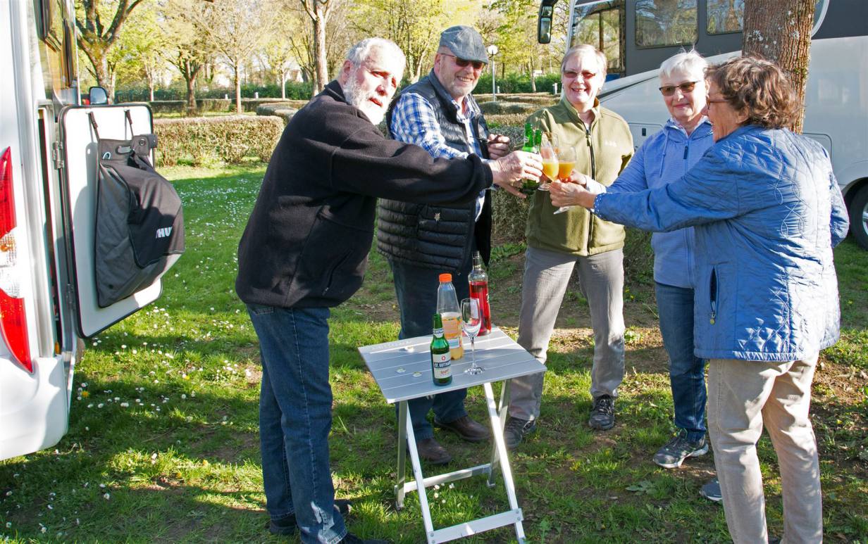 Endlich war es soweit um 09.3o Uhr besammelten wir uns bei der Sporthalle Breiti. Nach einer kurzen Begrüssung wurde mein Vorschlag anstelle von Eguisheim direkt Dijon anzufahren einstimmig angenommen. Also zogen wir los. Dem Rhein entlang fuhren wir nach Basel wo es einen kleinen Stau hatte. Wir haben ja Ferien war die Devise und somit standen wir hinten an. Es ging aber zügig weiter und schnell standen wir am Zoll nach Frankreich. Da keine Kontrollen stattfanden ging es direkt weiter Richtung Belfort. Wir fuhren über Land und konnten den Frühling so recht geniessen. Unterwegs fanden wir einen Gasthof wo wir so richtig französisch Essen konnten. Das heisst drei Gänge aber keinen Alkohol, da wir erst die Hälfte der Strecke hinter uns hatten. Nach etwas mehr als einer Stunde mit Kühen und Rapsfeldern die bereits Blüten. Bei einem weiteren Halt 100 km vor Dijon vertraten wir uns kurz die Füsse und nahmen den Rest der Strecke unter die Räder. Gegen 18.00 Uhr erreichten wir den Campingplatz der in Wirklichkeit ein Stellplatz ist rund 2 km von der Altstadt entfernt. Ein Platz mit wunderschönen grossen Parzellen erwartete uns.